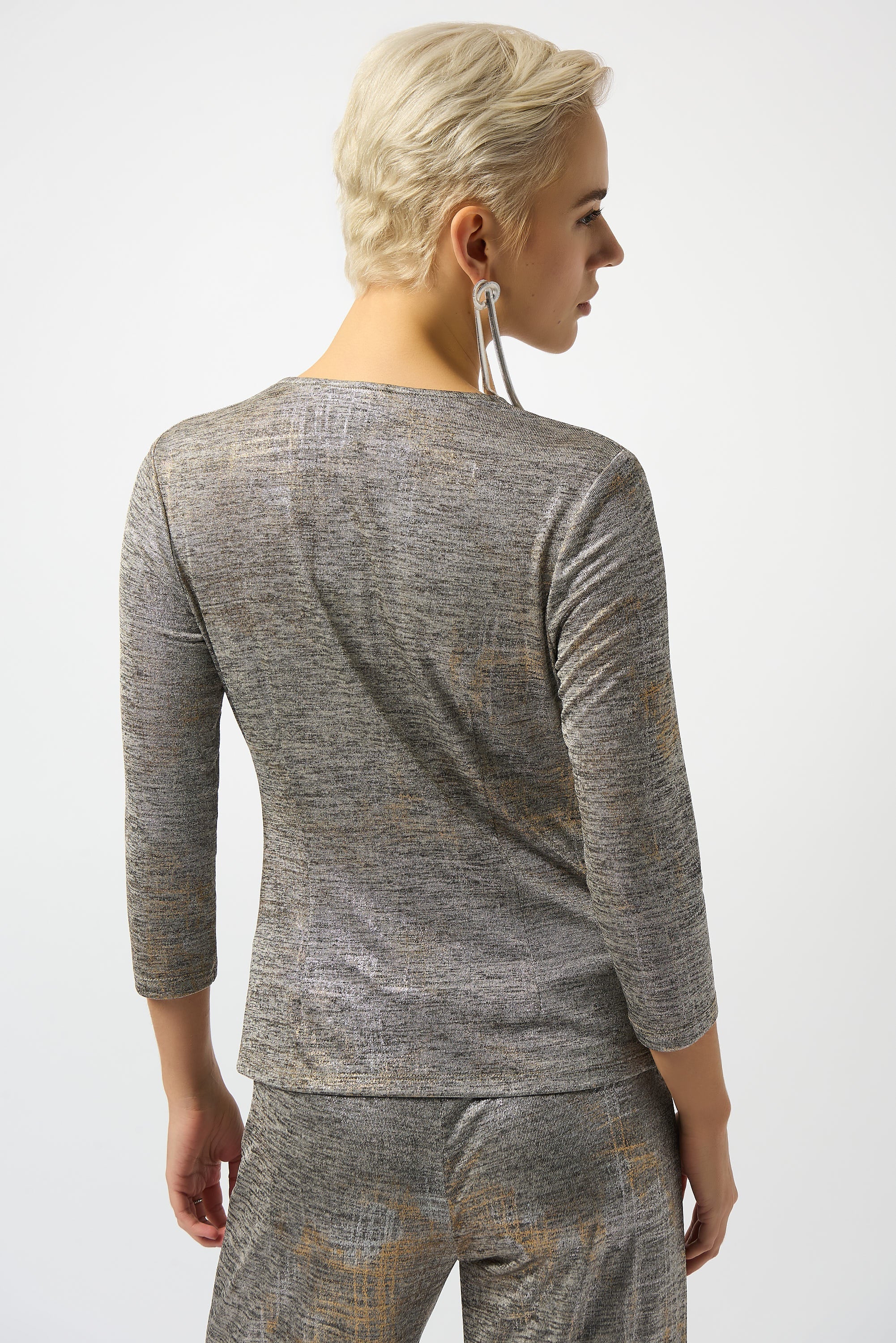 Joseph Ribkoff Beige/Multi Foiled Knit Wrap Top Style 253087.