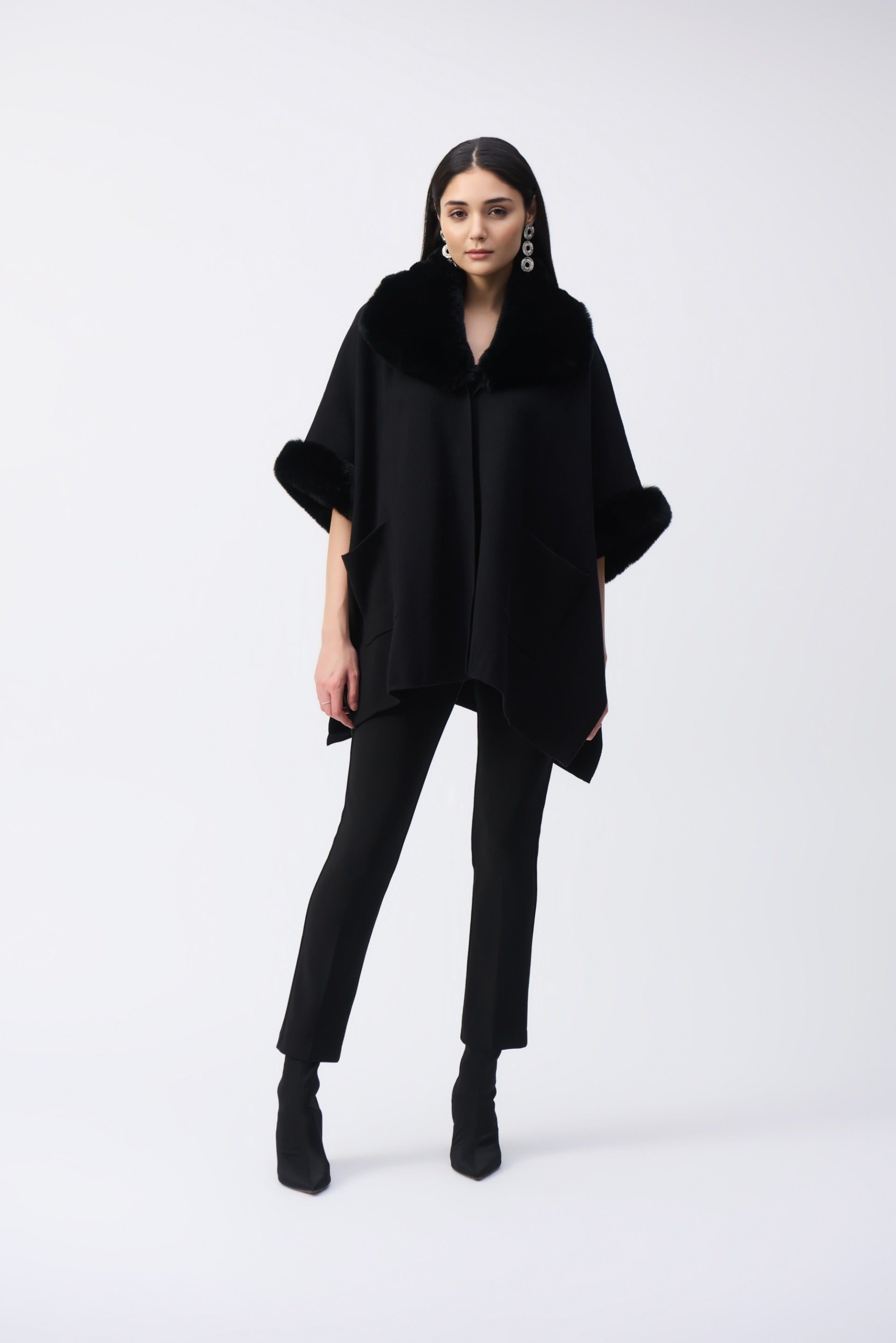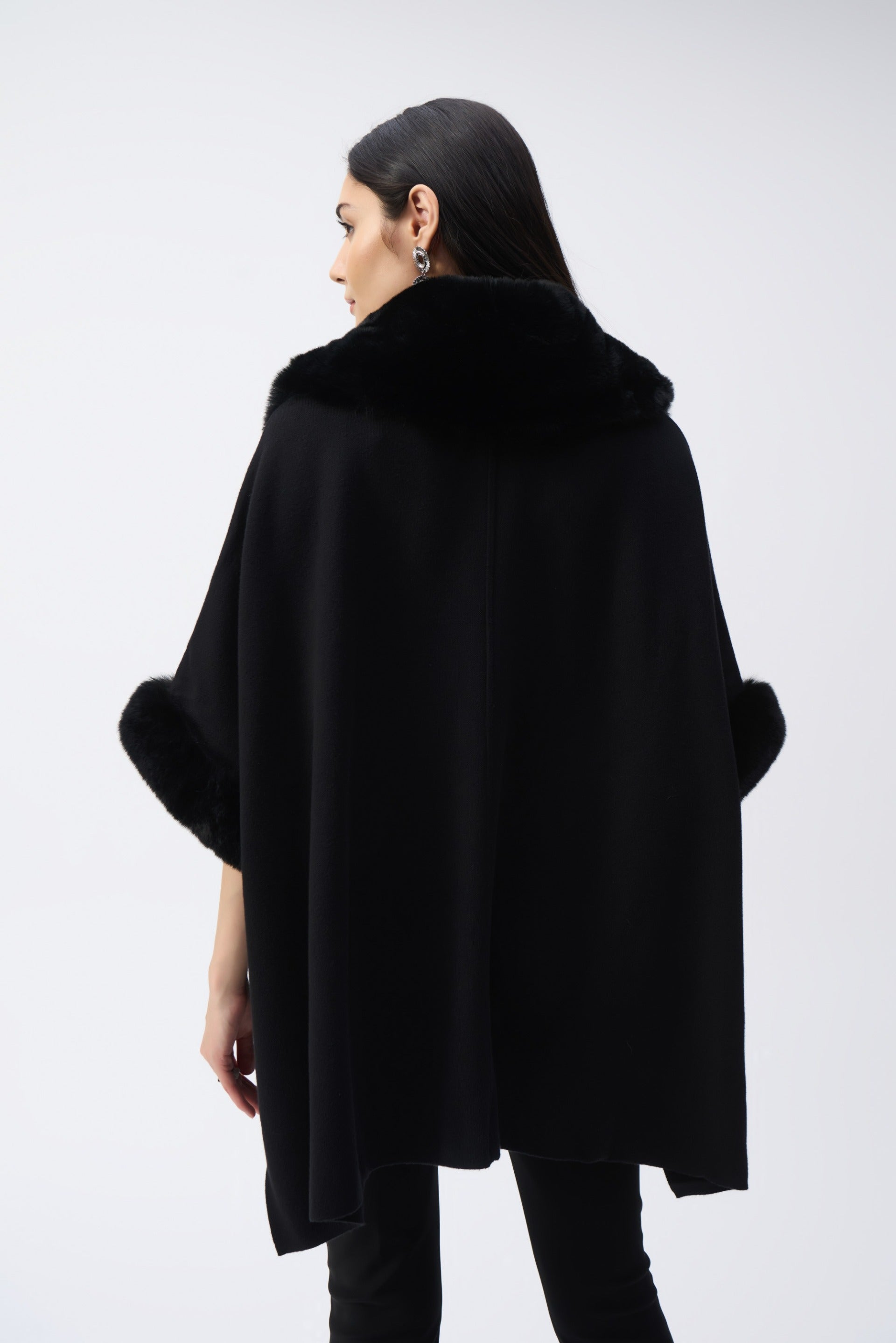 Joseph Ribkoff Black Brushed Jacquard and Faux Fur Cape Style 243930