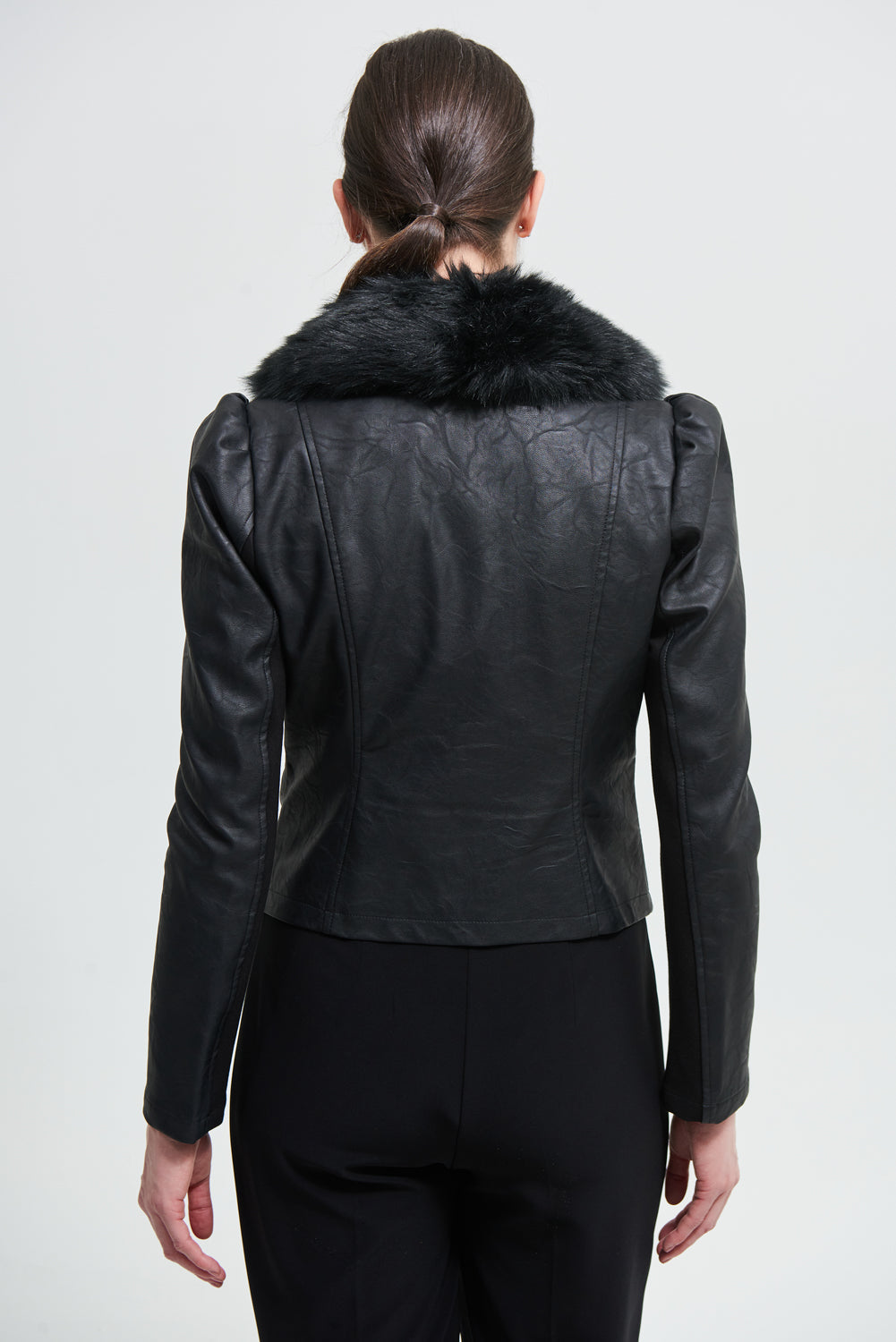 Joseph Ribkoff Black Faux Fur Jacket Style 213963