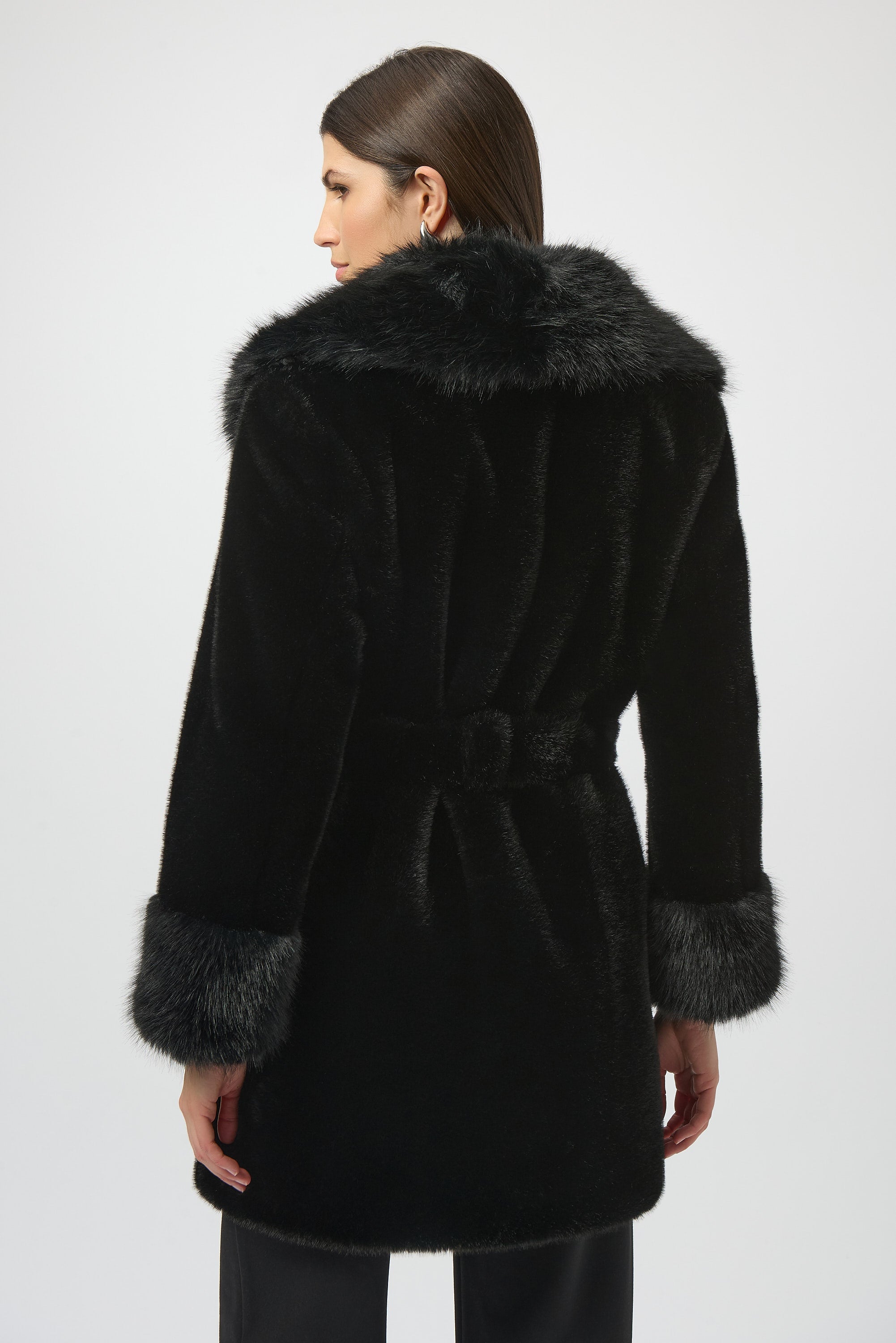 Joseph Ribkoff Black Faux Fur Shawl Collar Fitted Coat Style 254907