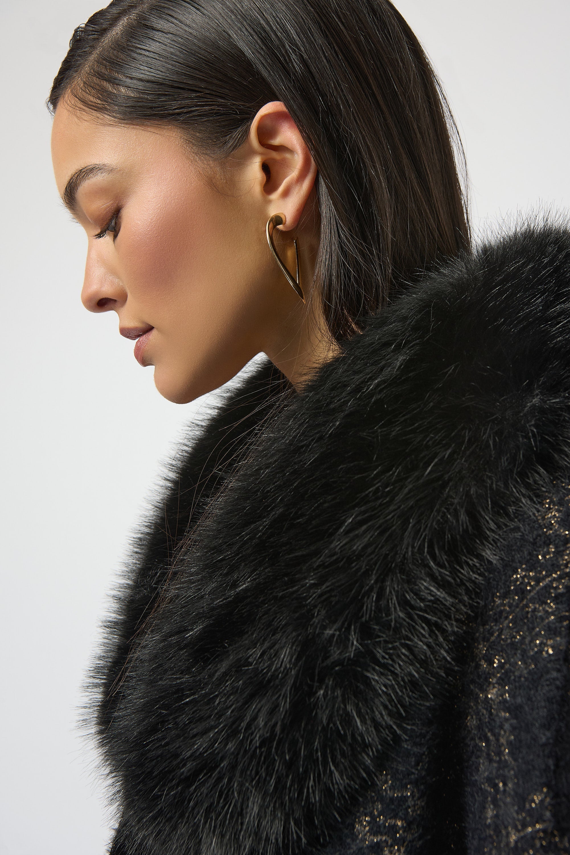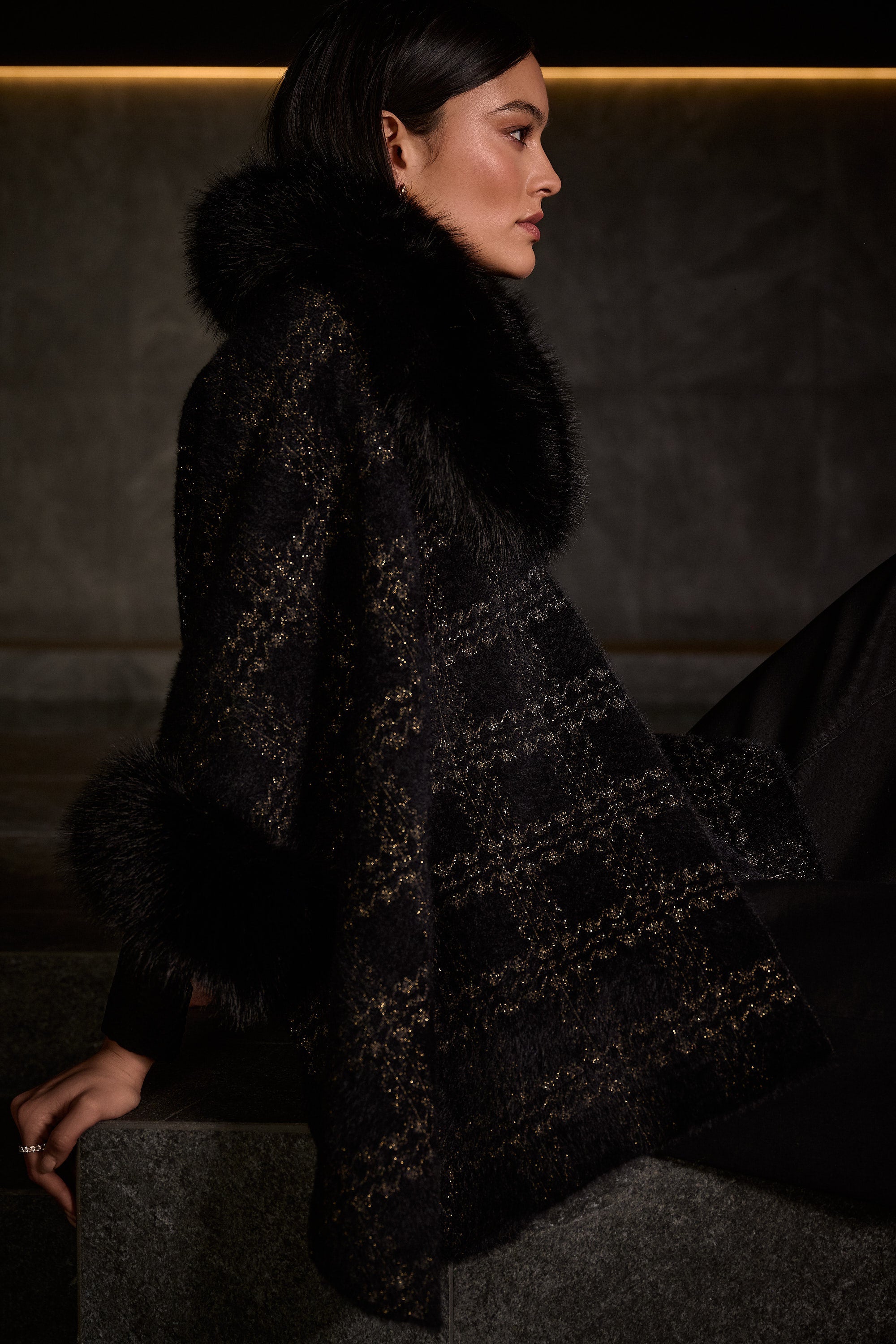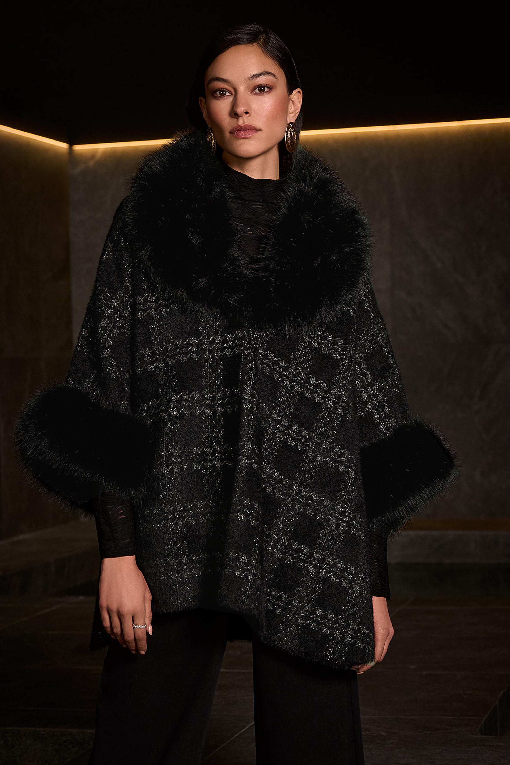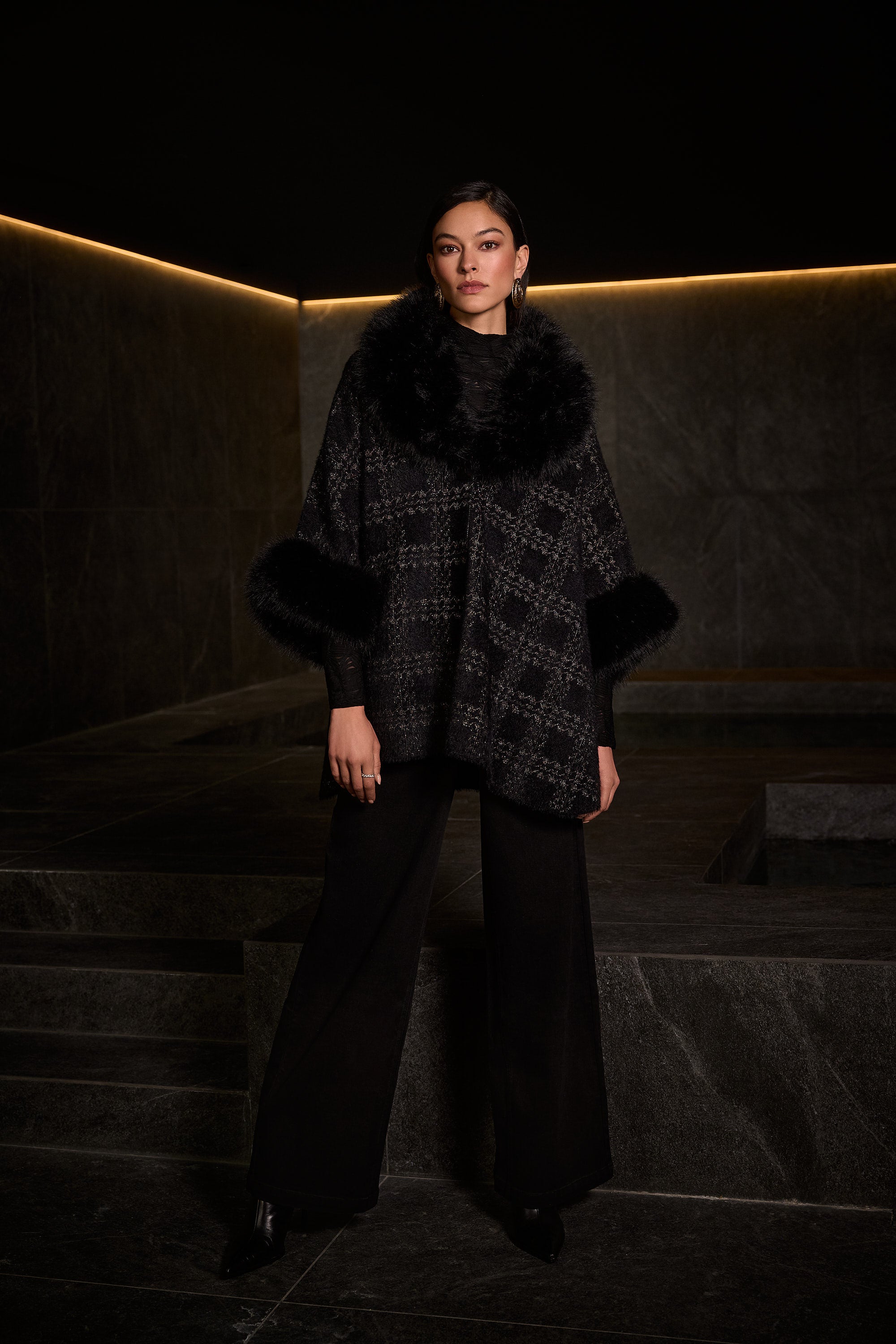 Joseph Ribkoff Black/Gold Cape with Faux Fur Accents Style 254934