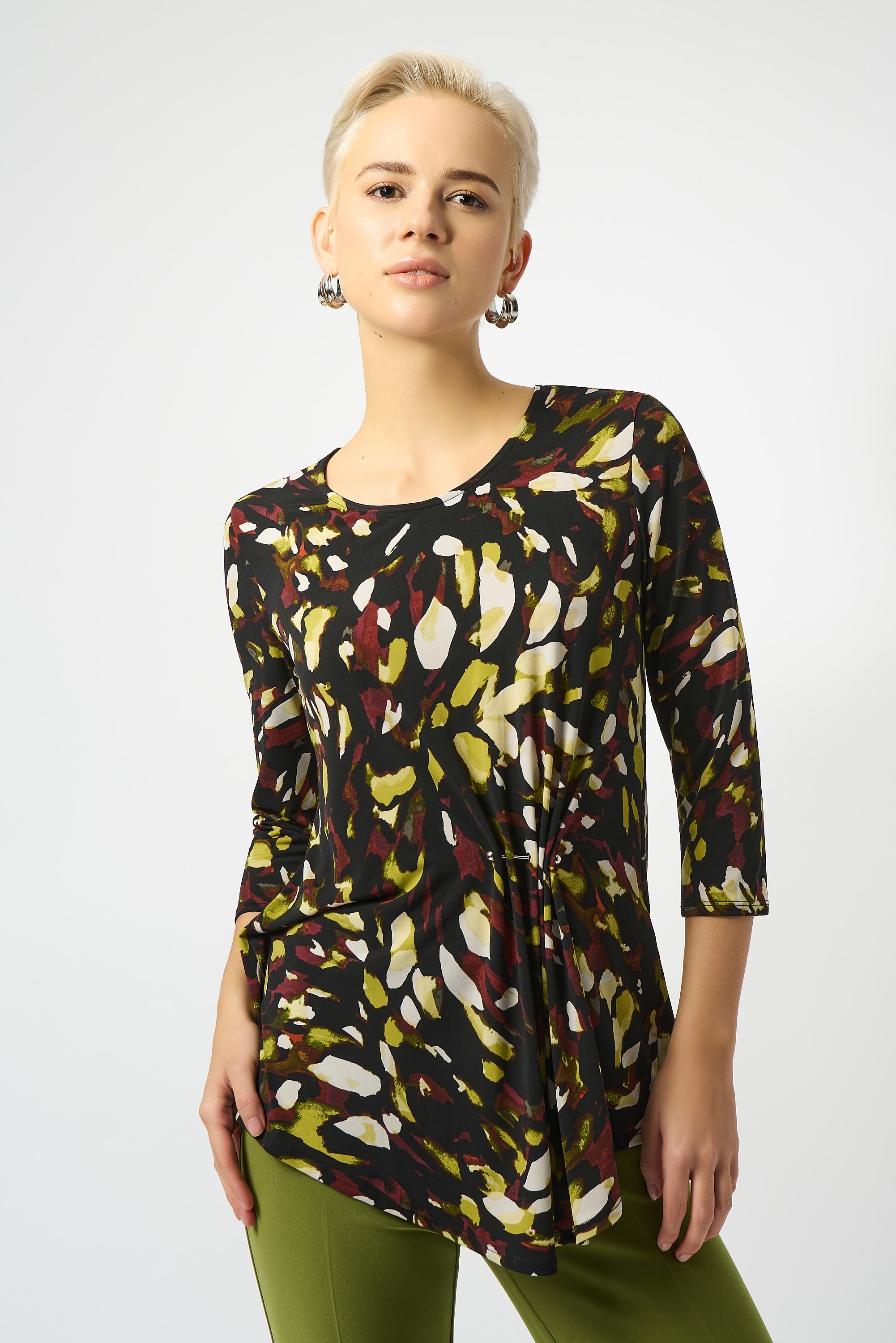 Joseph Ribkoff Black/Multi Animal Print Asymmetrical Tunic Style 253030