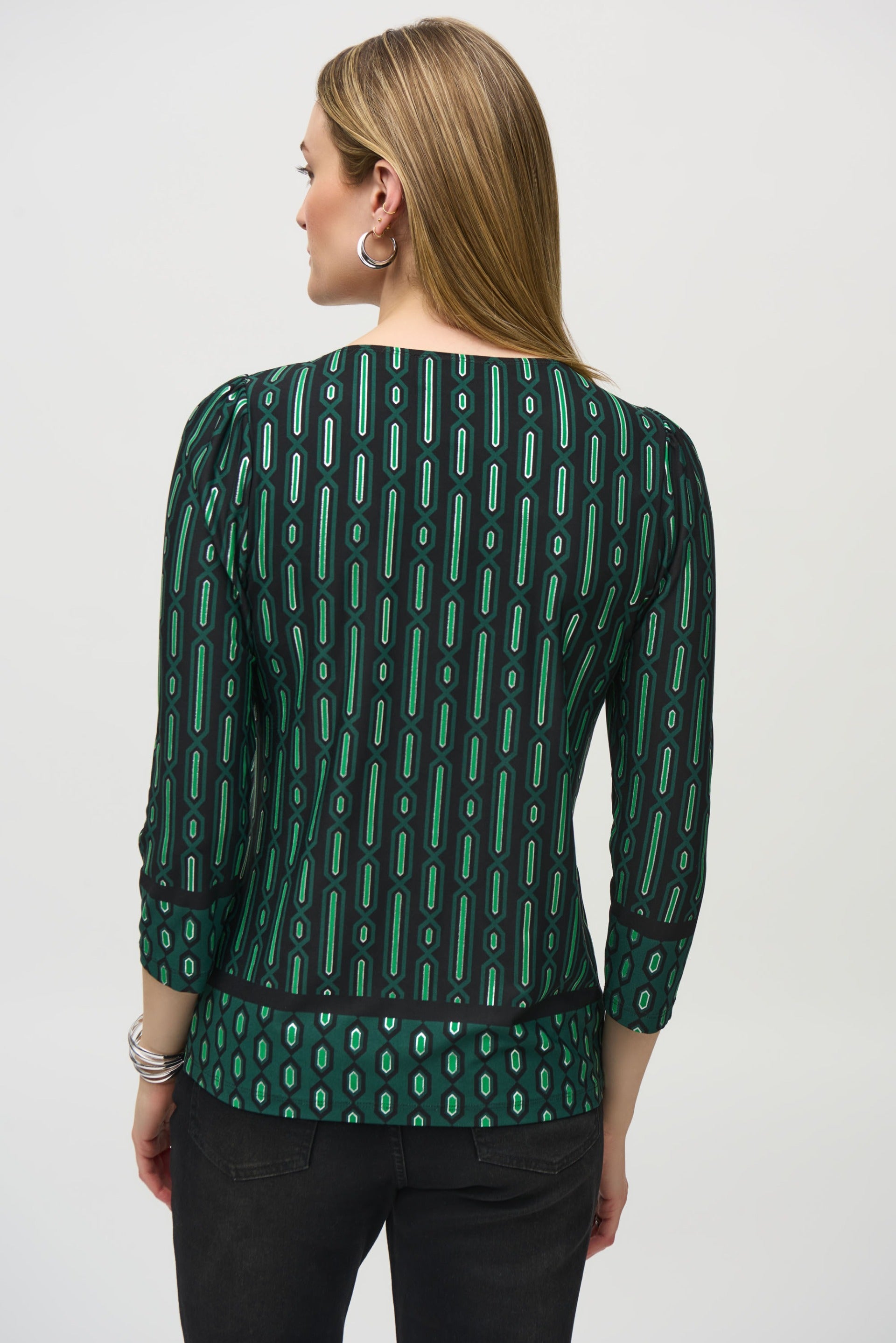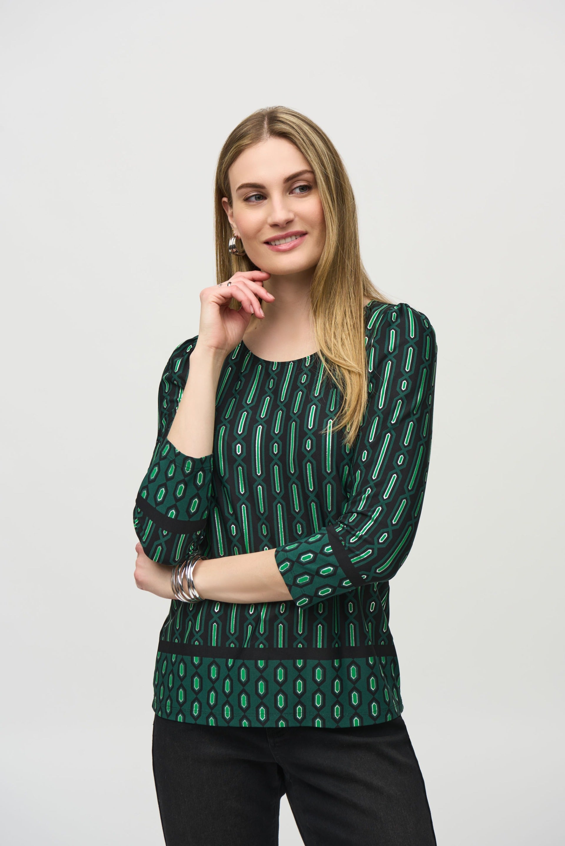 Joseph Ribkoff Black/Multi Geometric Border Print Top Style 244243