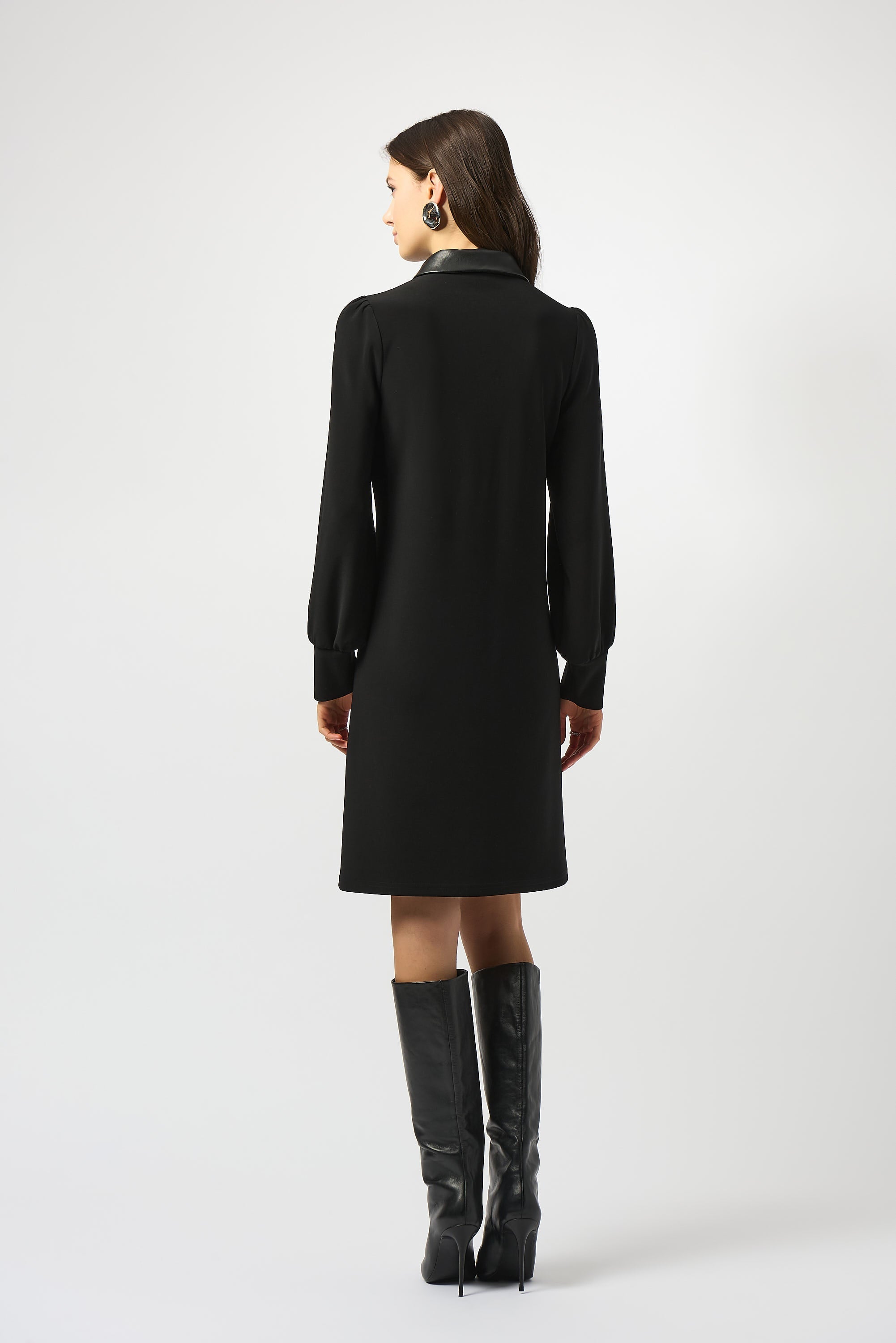 Joseph Ribkoff Black Silky Knit & Leatherette Trapeze Dress Style 253164
