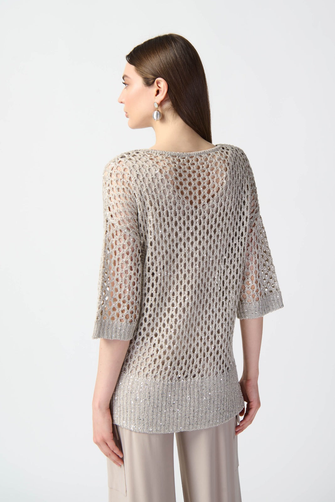 Joseph Ribkoff Champagne Open Stitch Sweater with Sequins Style 241922