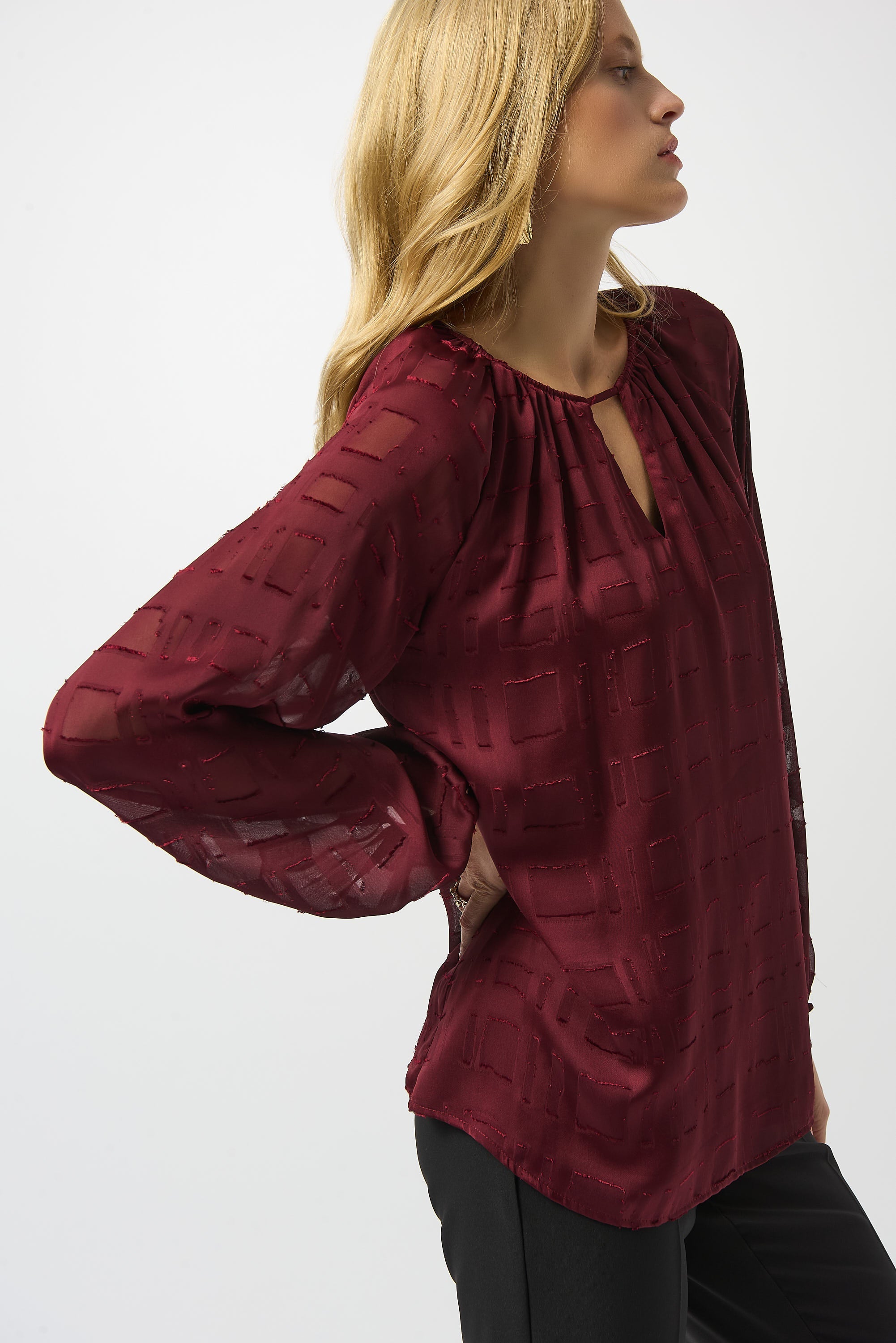 Joseph Ribkoff Merlot Satin Burnout Boxy Top Style 253135