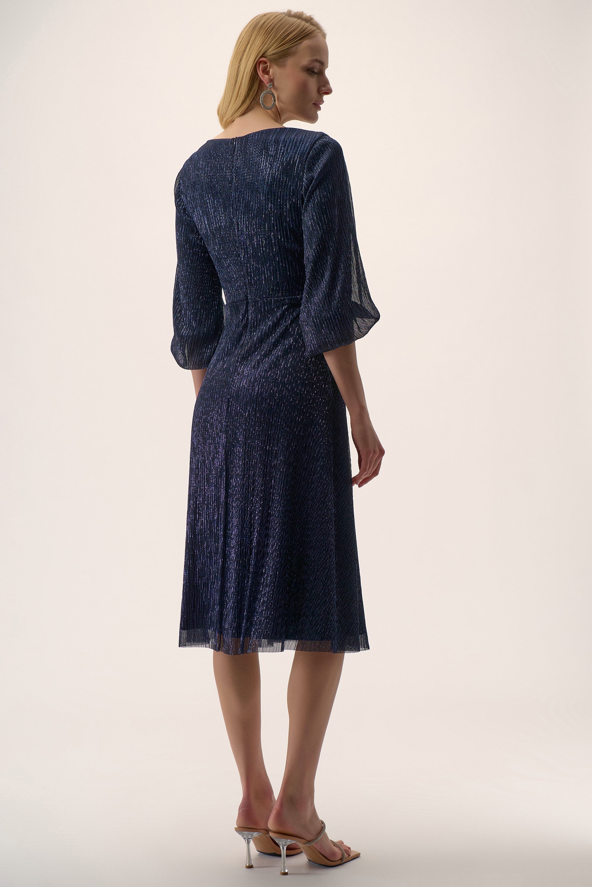 Joseph Ribkoff Sparkle Mesh Plissé Fit and Flare Midi Dress Style 254735