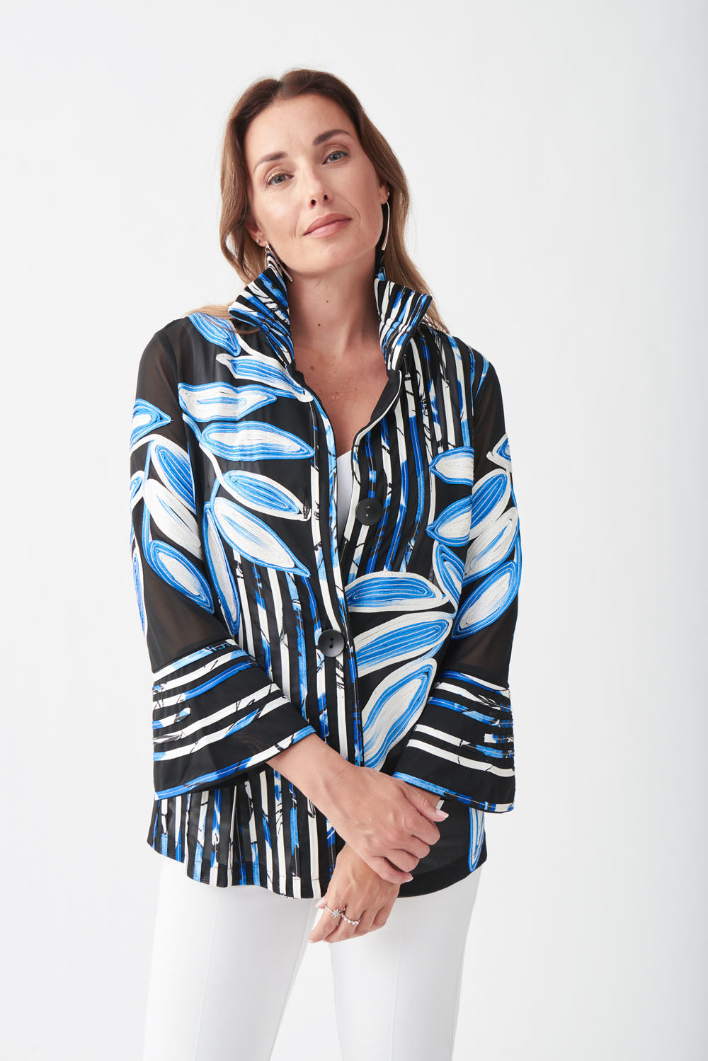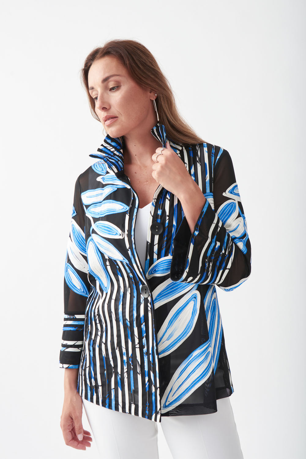 Joseph Ribkoff Black/White/Royal Sapphire Tropical Jacket Style 221932