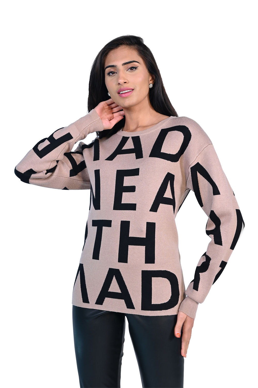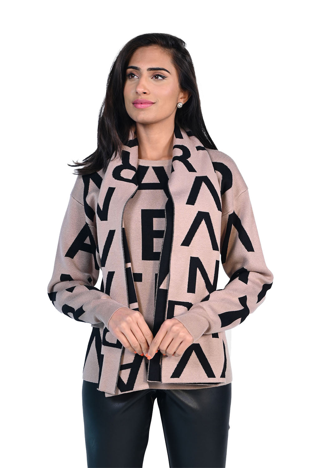 Frank Lyman Beige/Black Knit Top with Scarf Style 223423U
