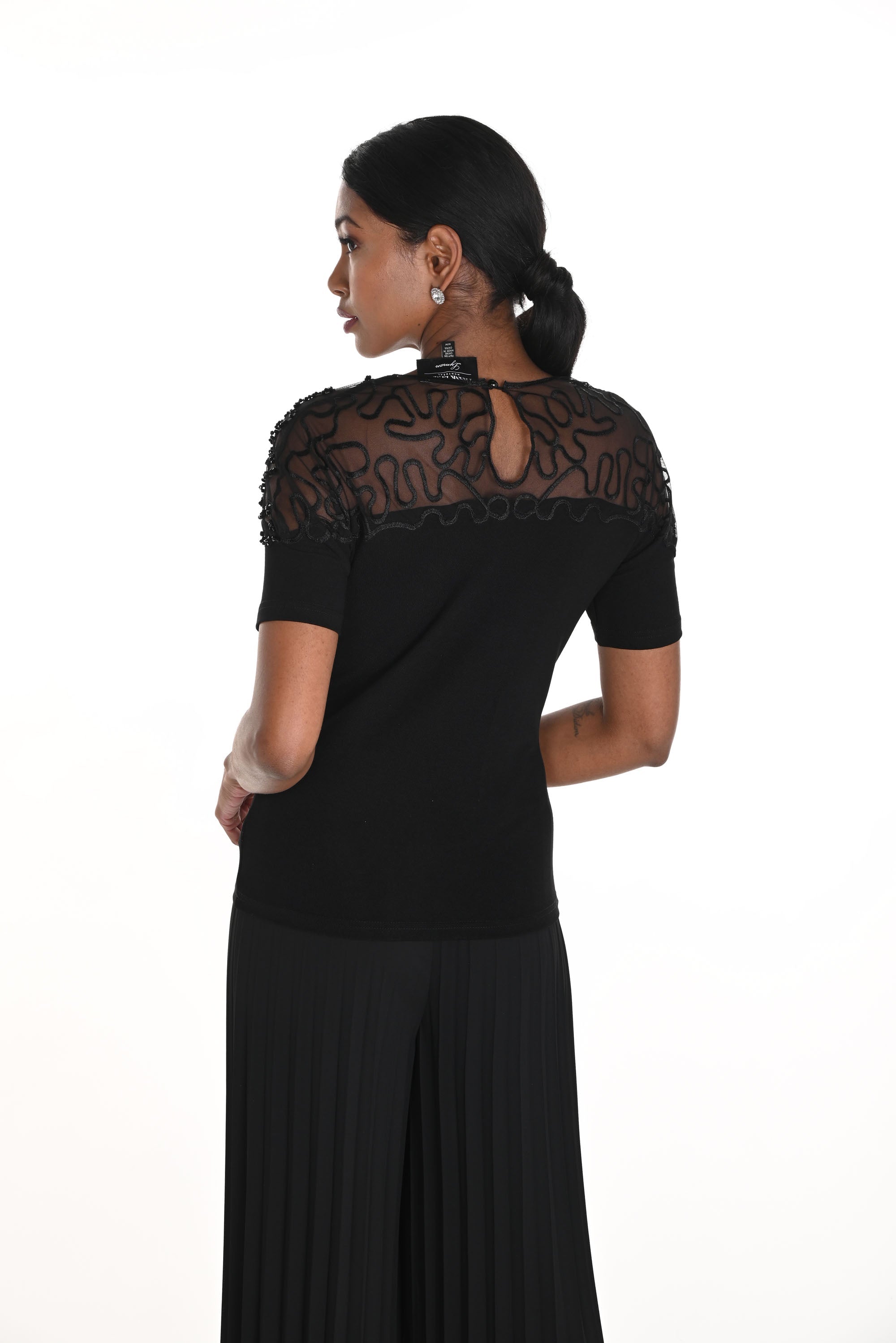 Frank Lyman Chic Beaded Crew Neck Top Style 259732