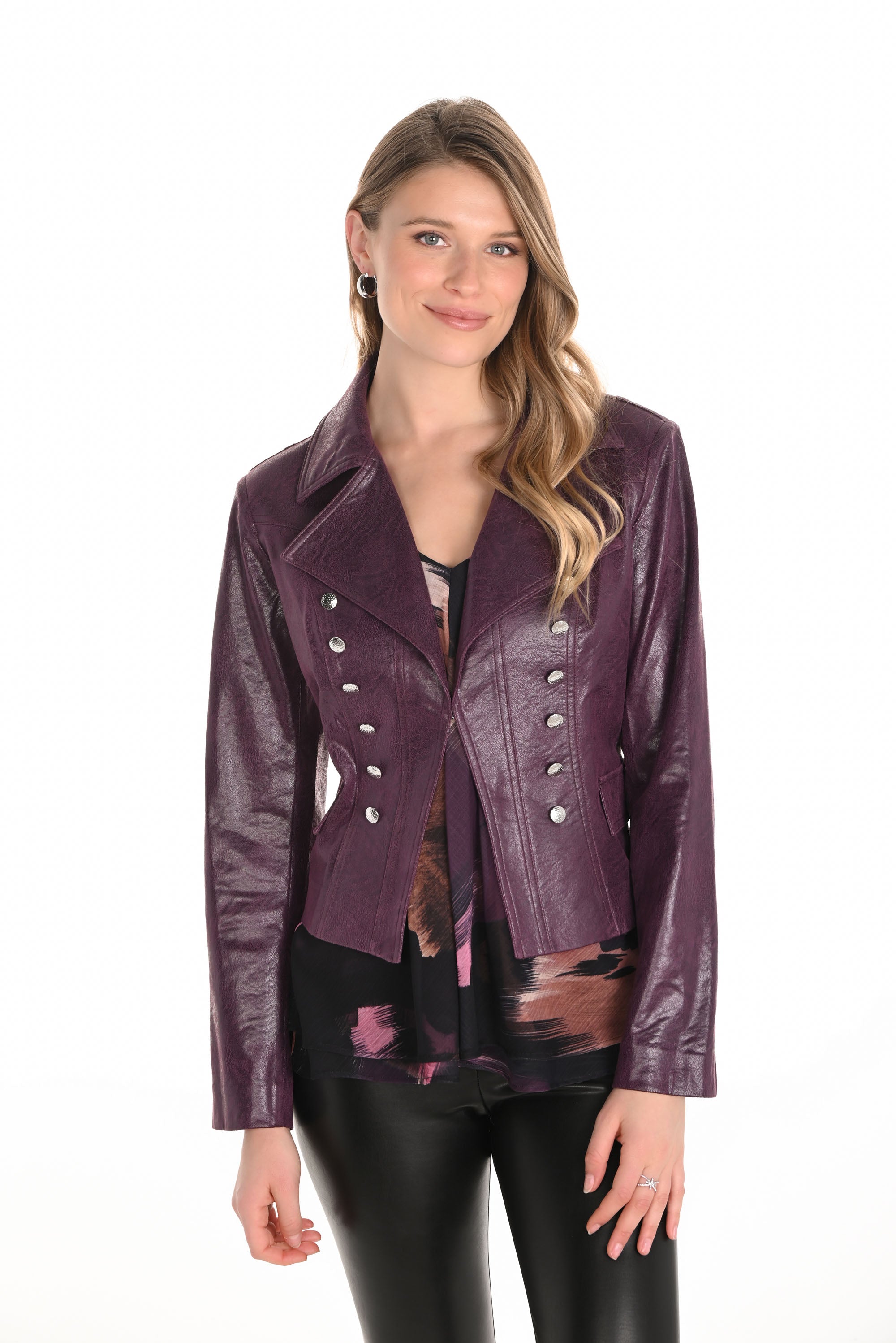 Frank Lyman Plum Leatherette Moto Jacket Style 253724
