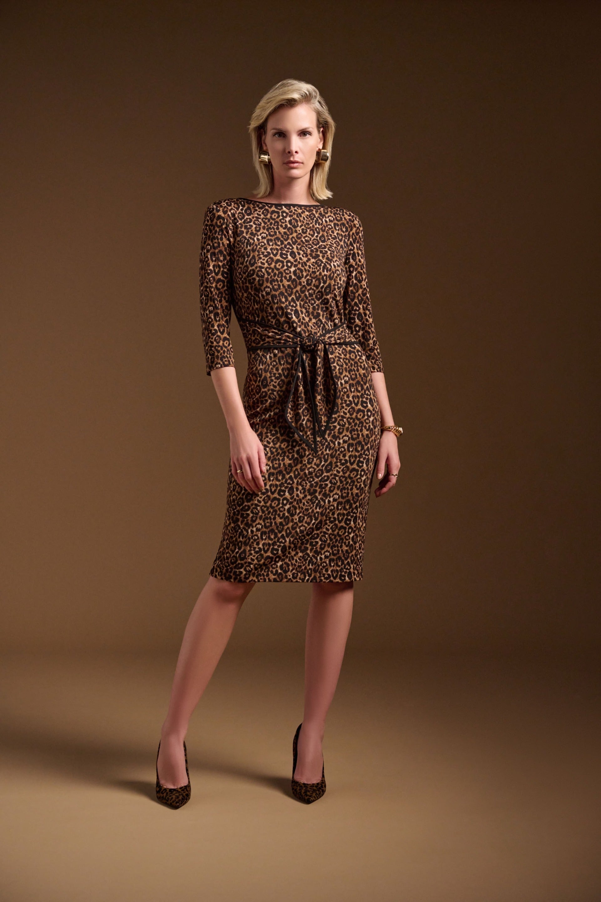 Joseph Ribkoff Beige/Black Animal Print Sheath Dress Style 244254