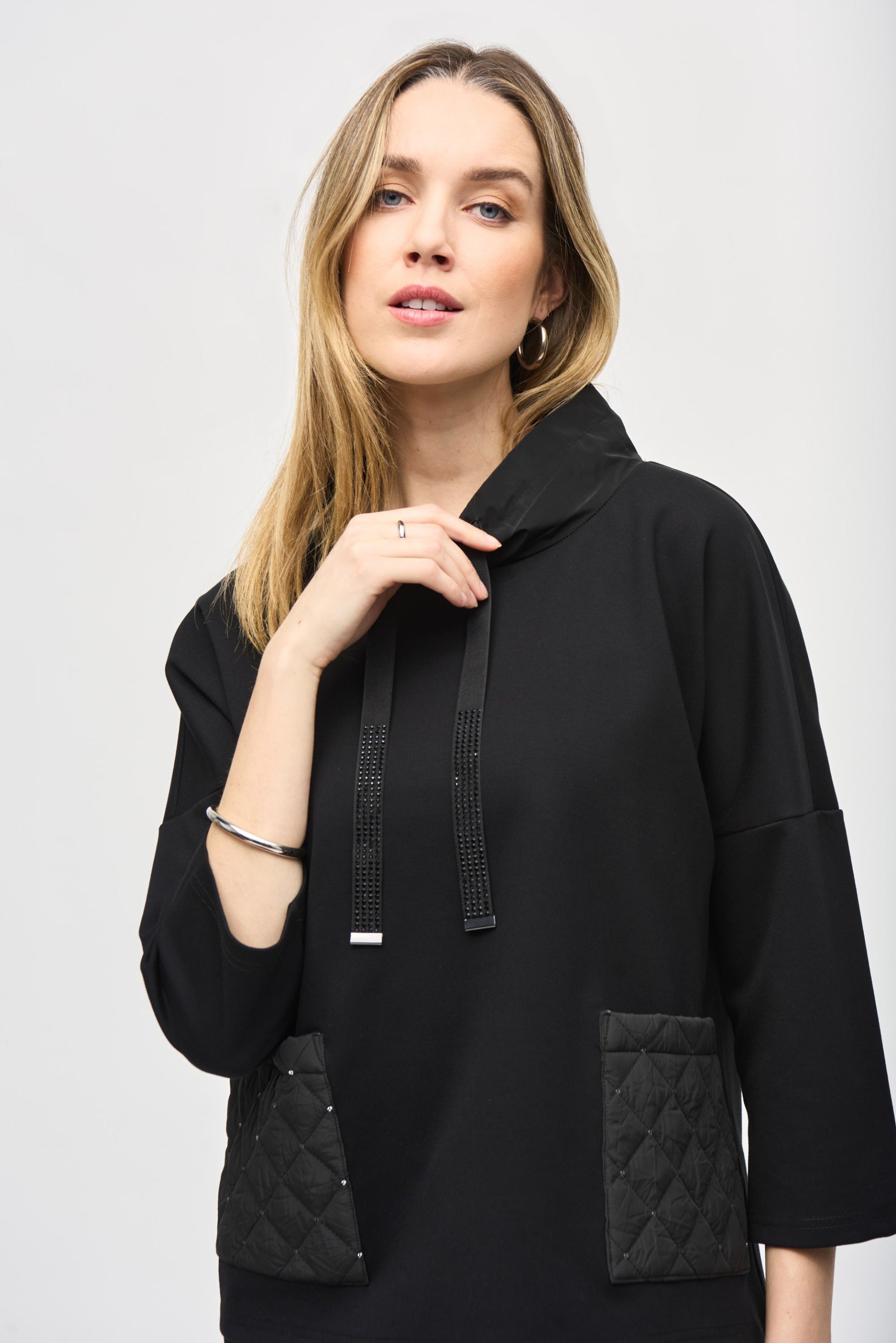 Joseph Ribkoff Black Cowl Collar Boxy Top Style 243085