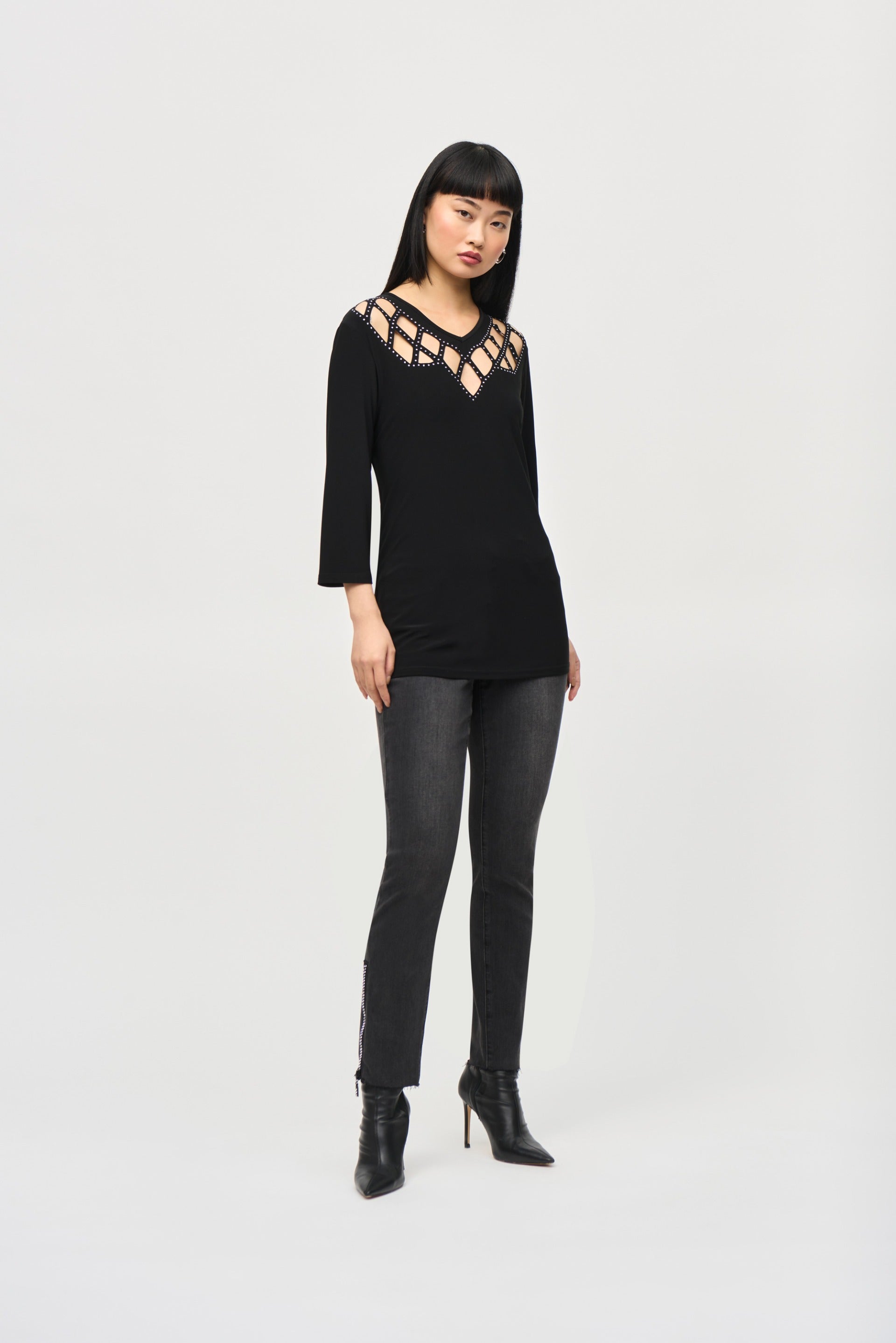 Joseph Ribkoff Black Dotted Keyhole Casual Top Style 243332