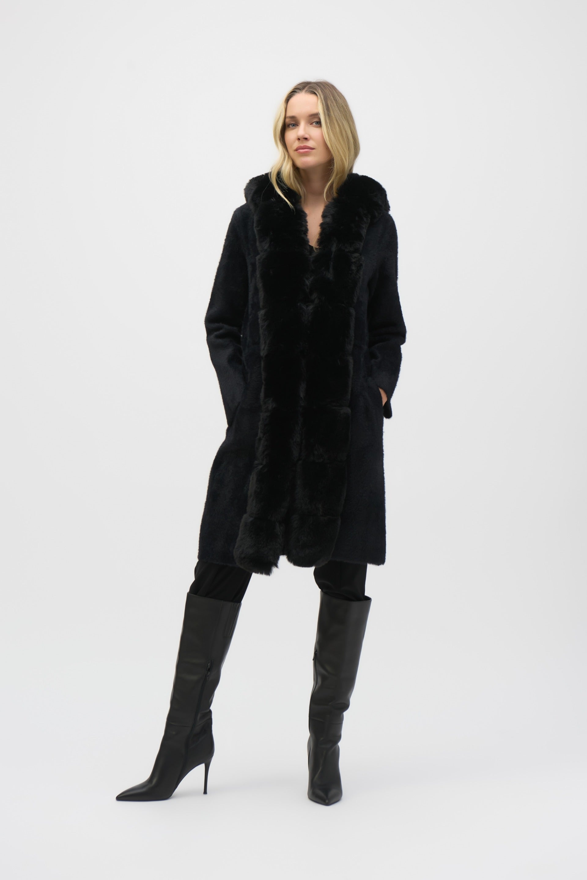 Joseph Ribkoff Black Faux Fur Hooded Coat Style 244929