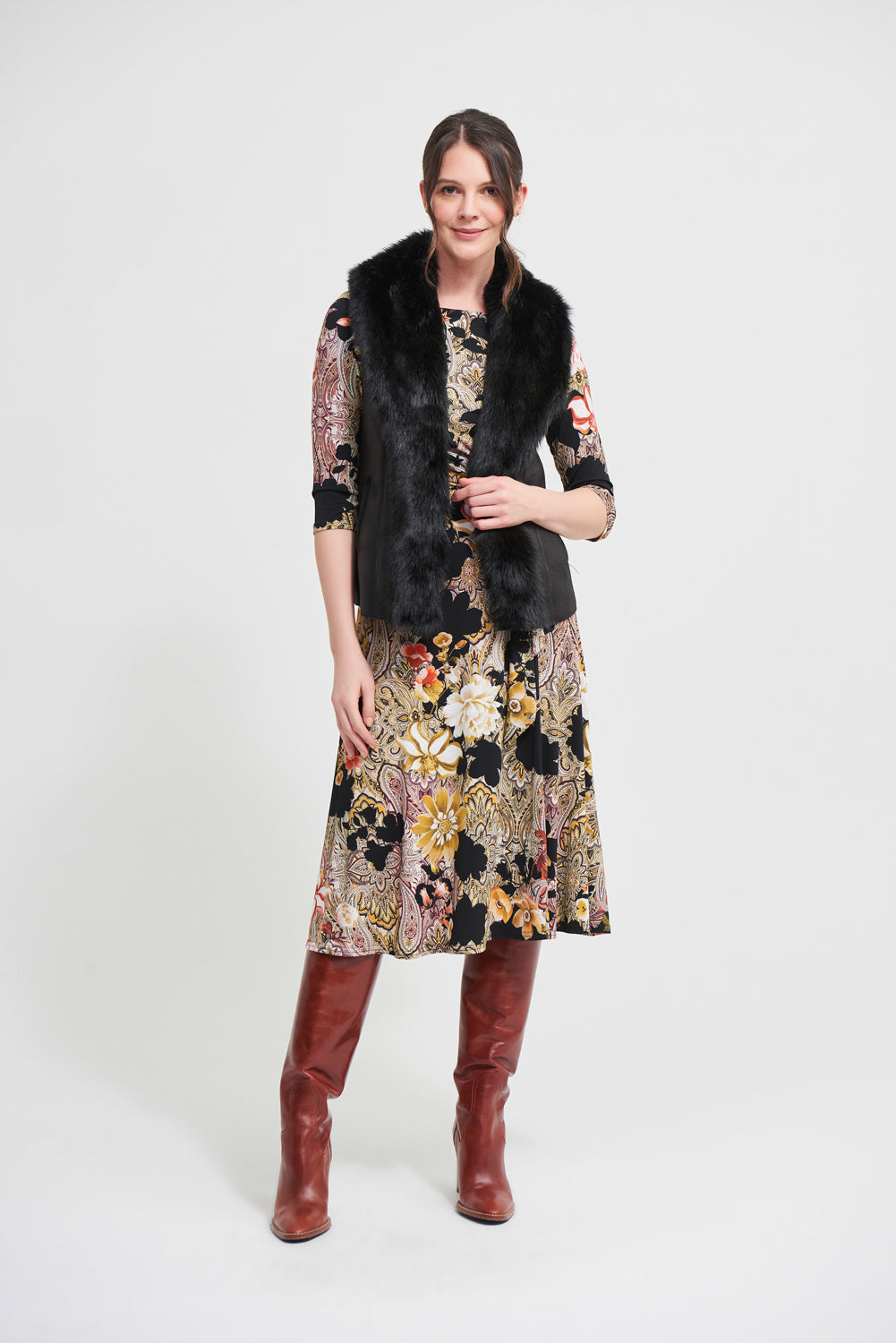 Joseph Ribkoff Black Faux Fur Vest Style 213996