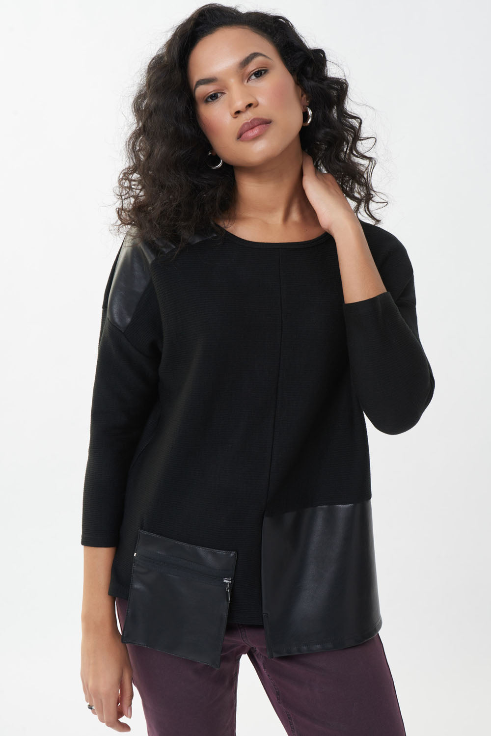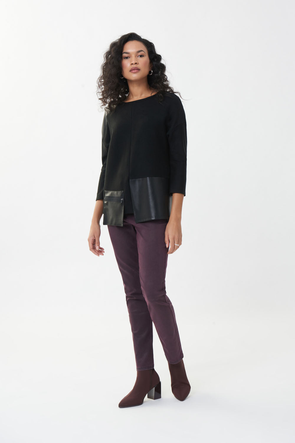 Joseph Ribkoff Black Faux Leather Patch Top Style 223025