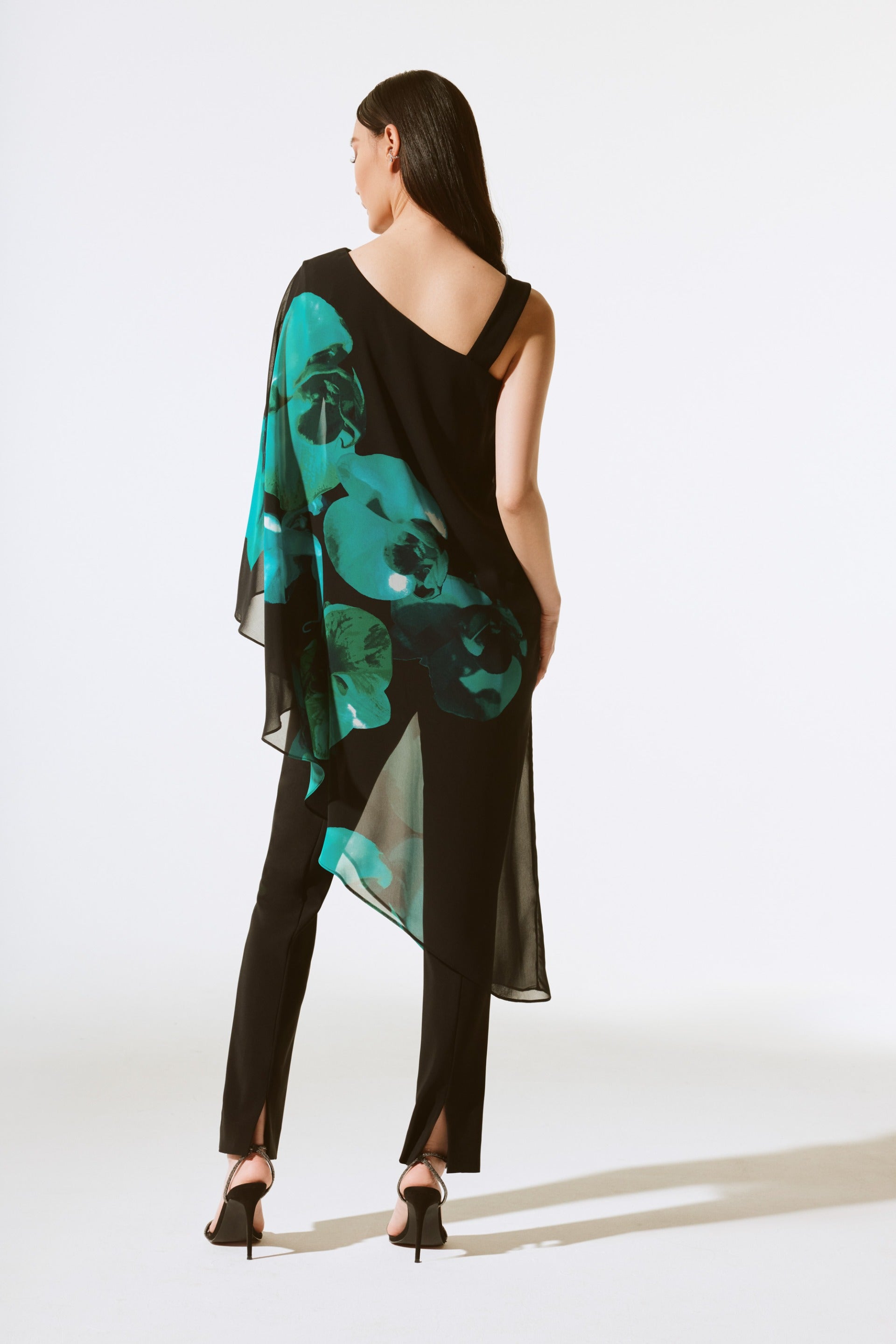 Joseph Ribkoff Black/Green Chiffon Floral Print Layered Top Style 243791