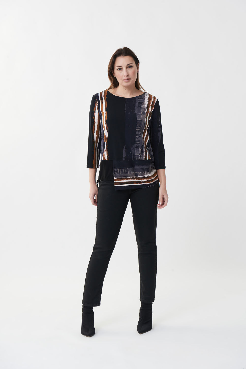 Joseph Ribkoff Black/Multi Abstract Print Top Style 223045
