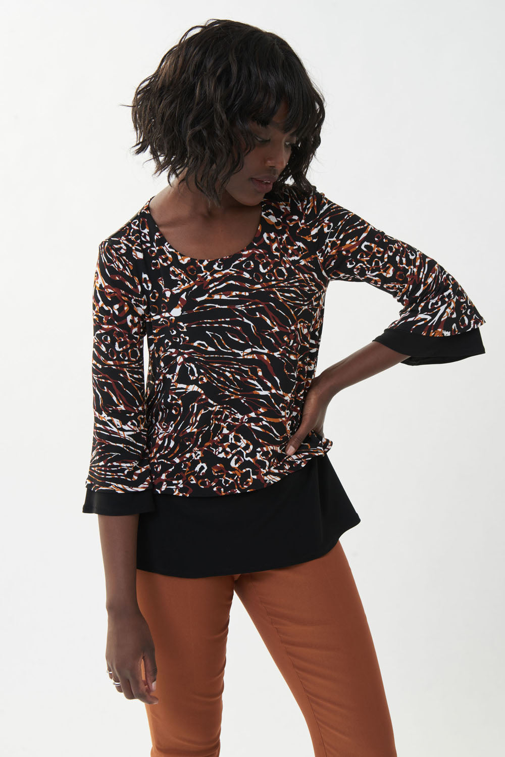 Joseph Ribkoff Black/Multi Contrast Trim Top Style 223212