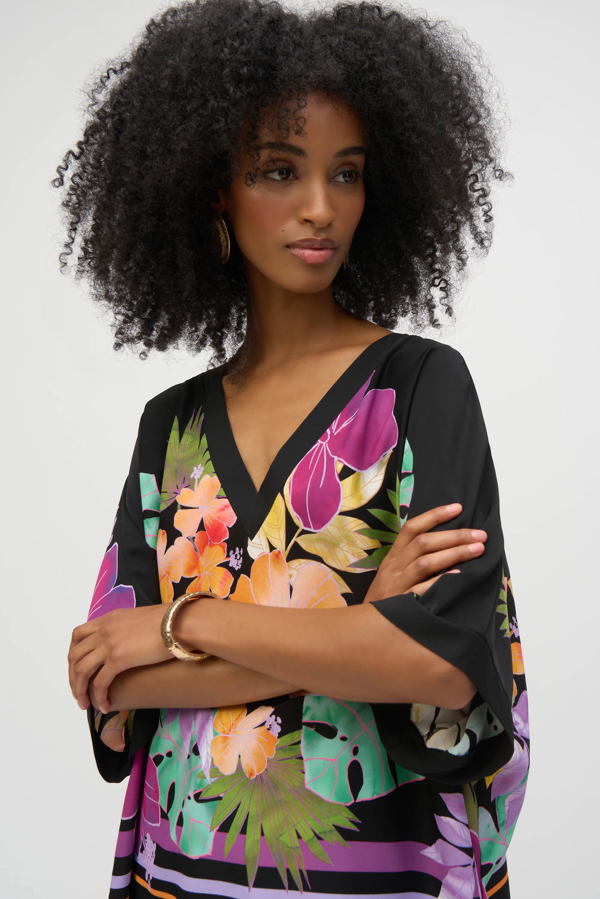 Joseph Ribkoff Black/Multi Floral Print Boxy Top Style 252218