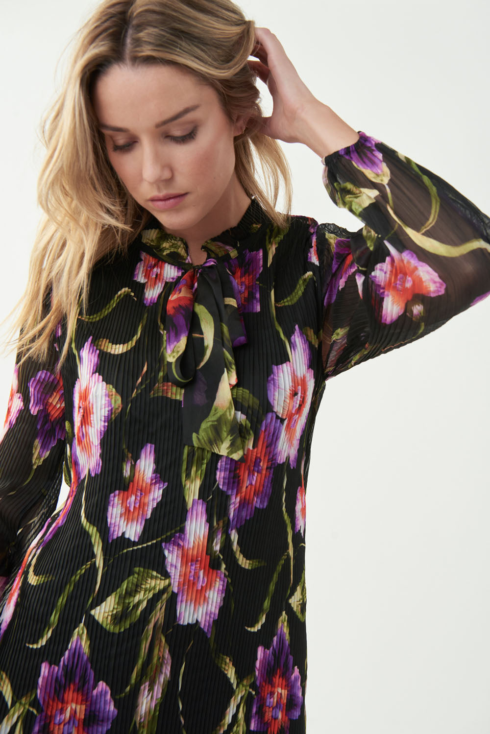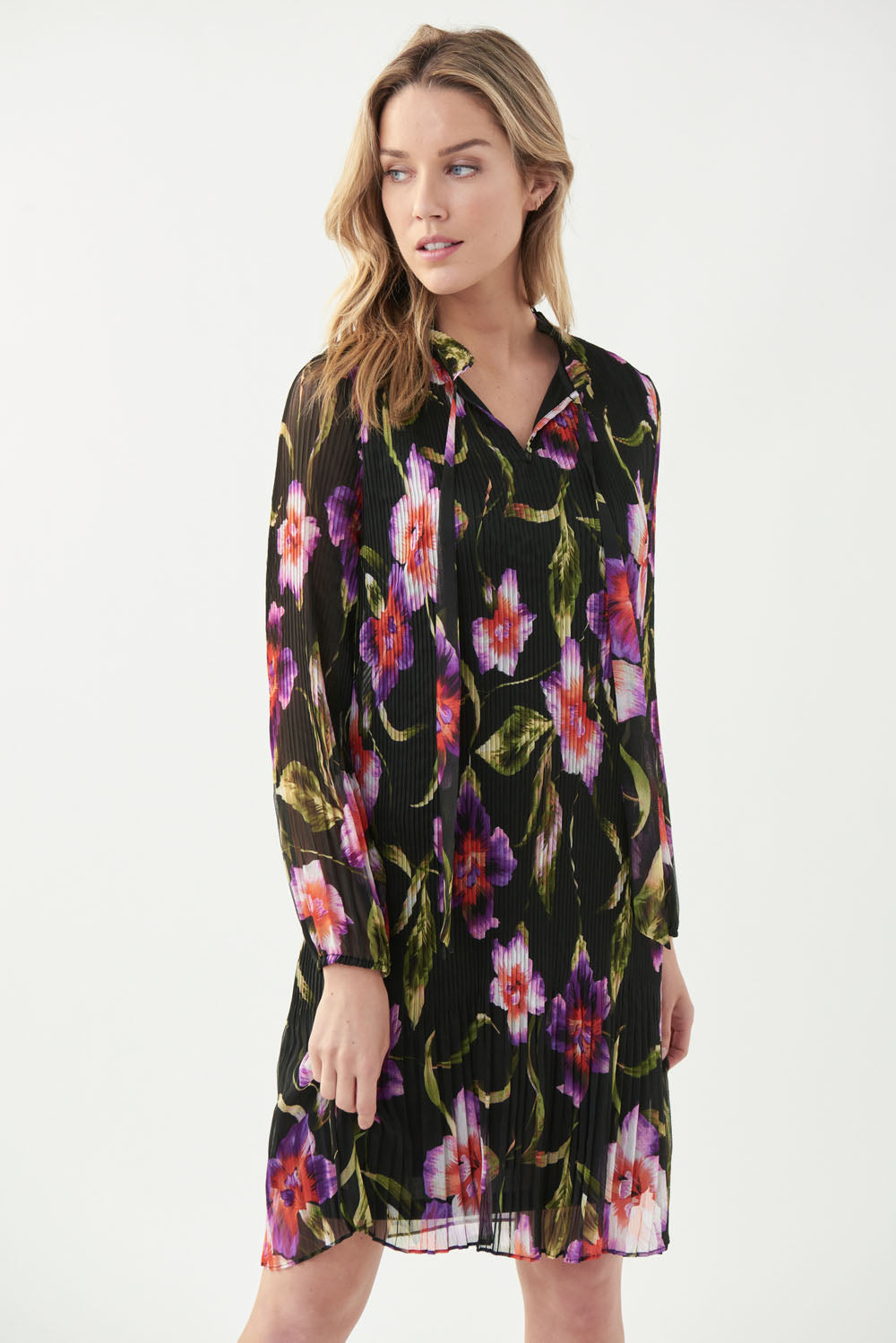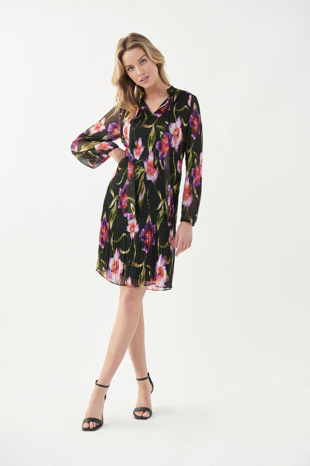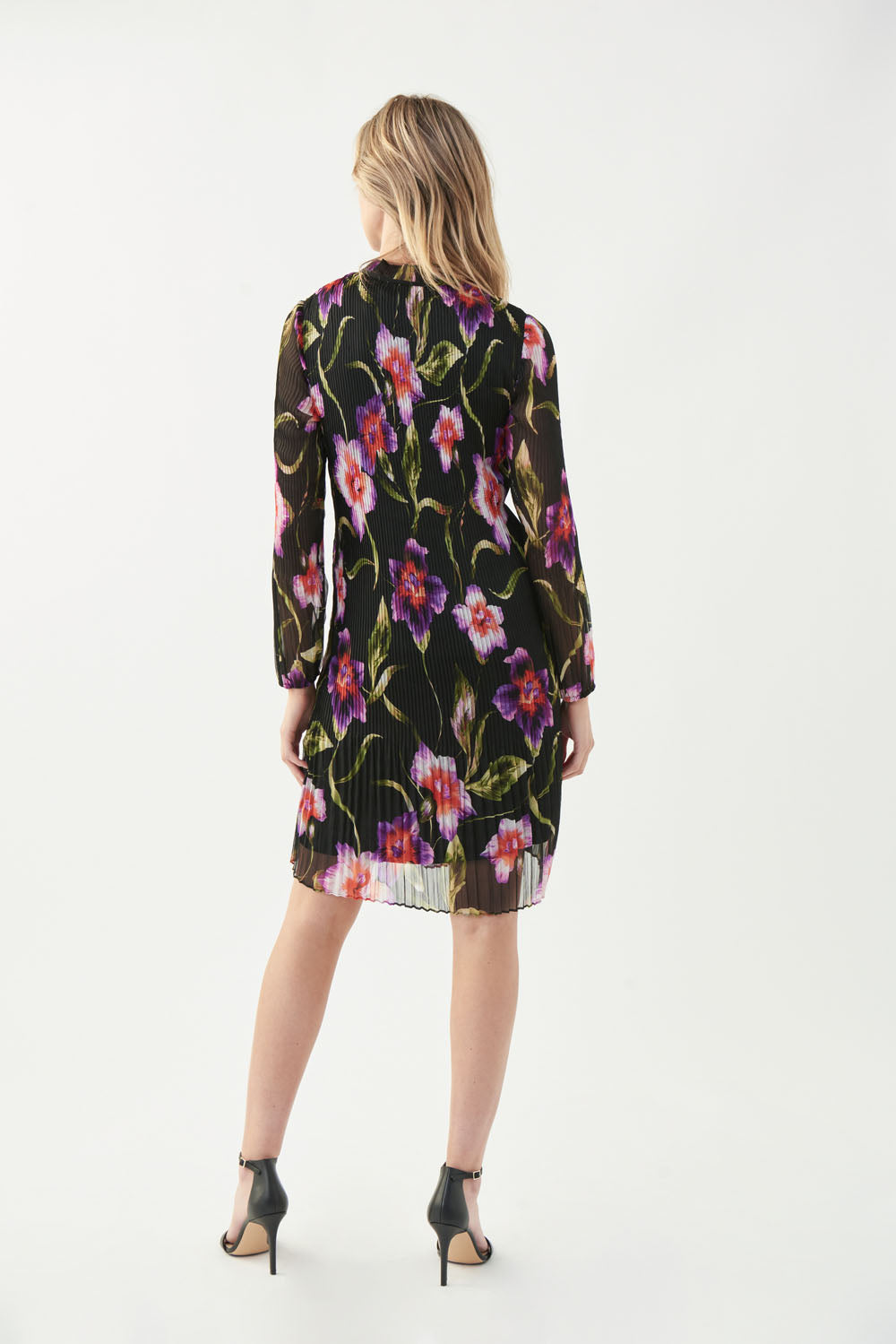 Joseph Ribkoff Black/Multi Pleated Floral Print Dress Style 221923