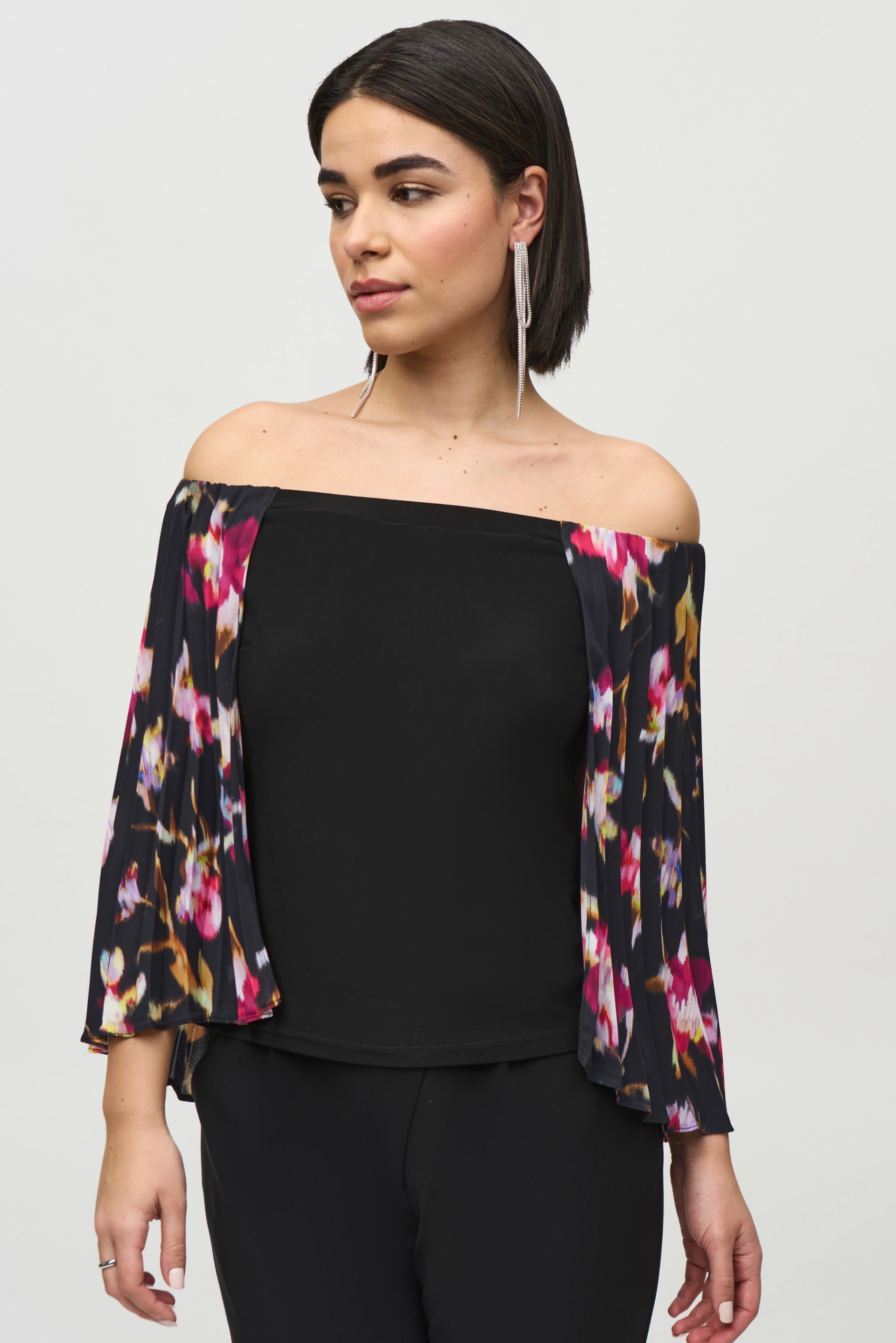 Joseph Ribkoff Black/Multi Top With Pleated Georgette Cape Style 244246