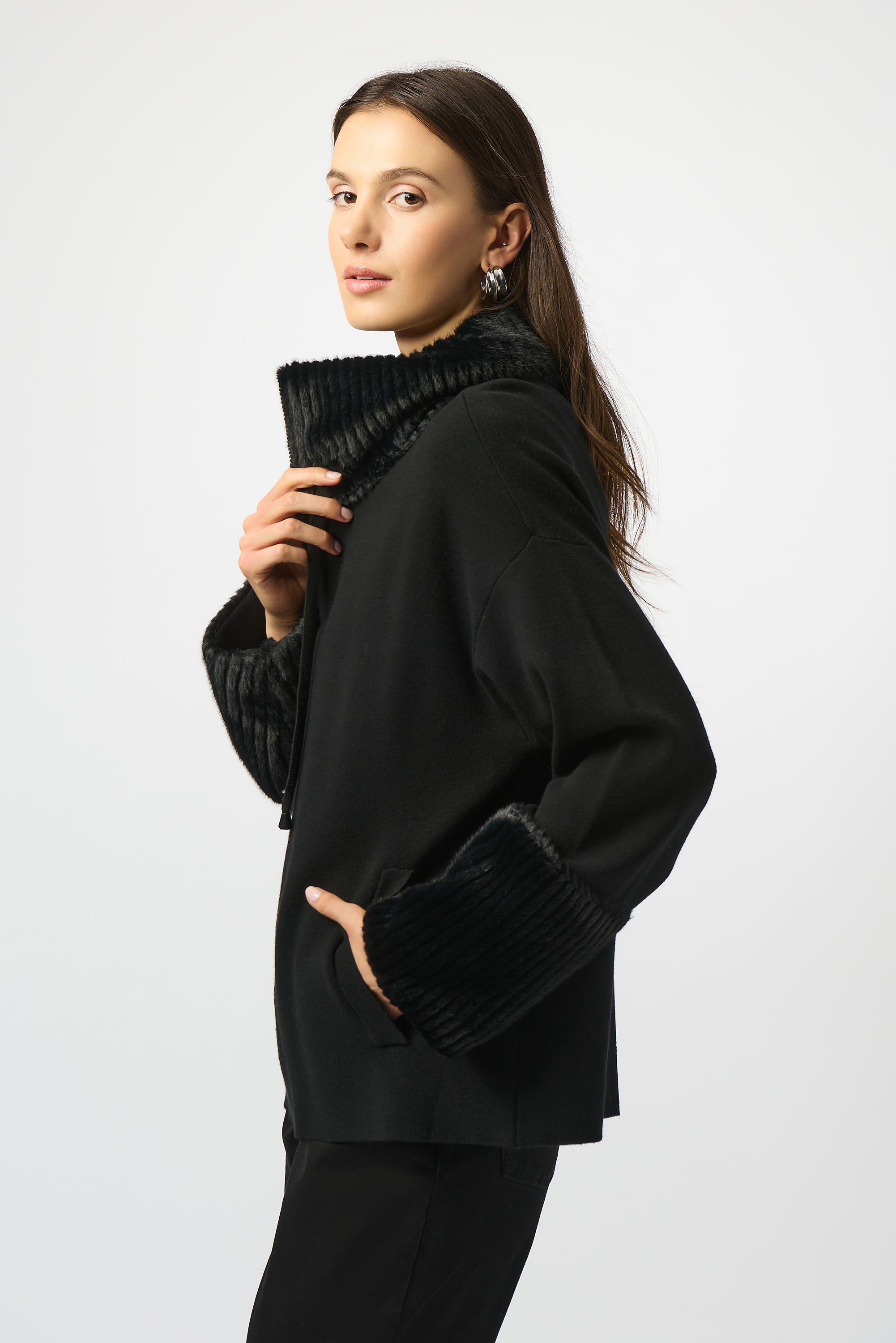 Joseph Ribkoff Sweater Knit Coat With Fur Trim Style 253905