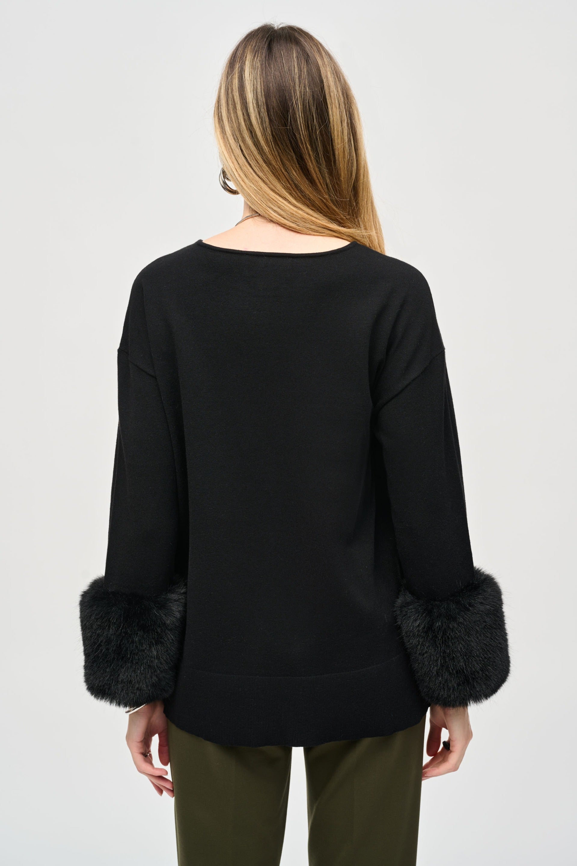 Joseph Ribkoff Black Tunic With Faux Fur Cuffs Style 243955