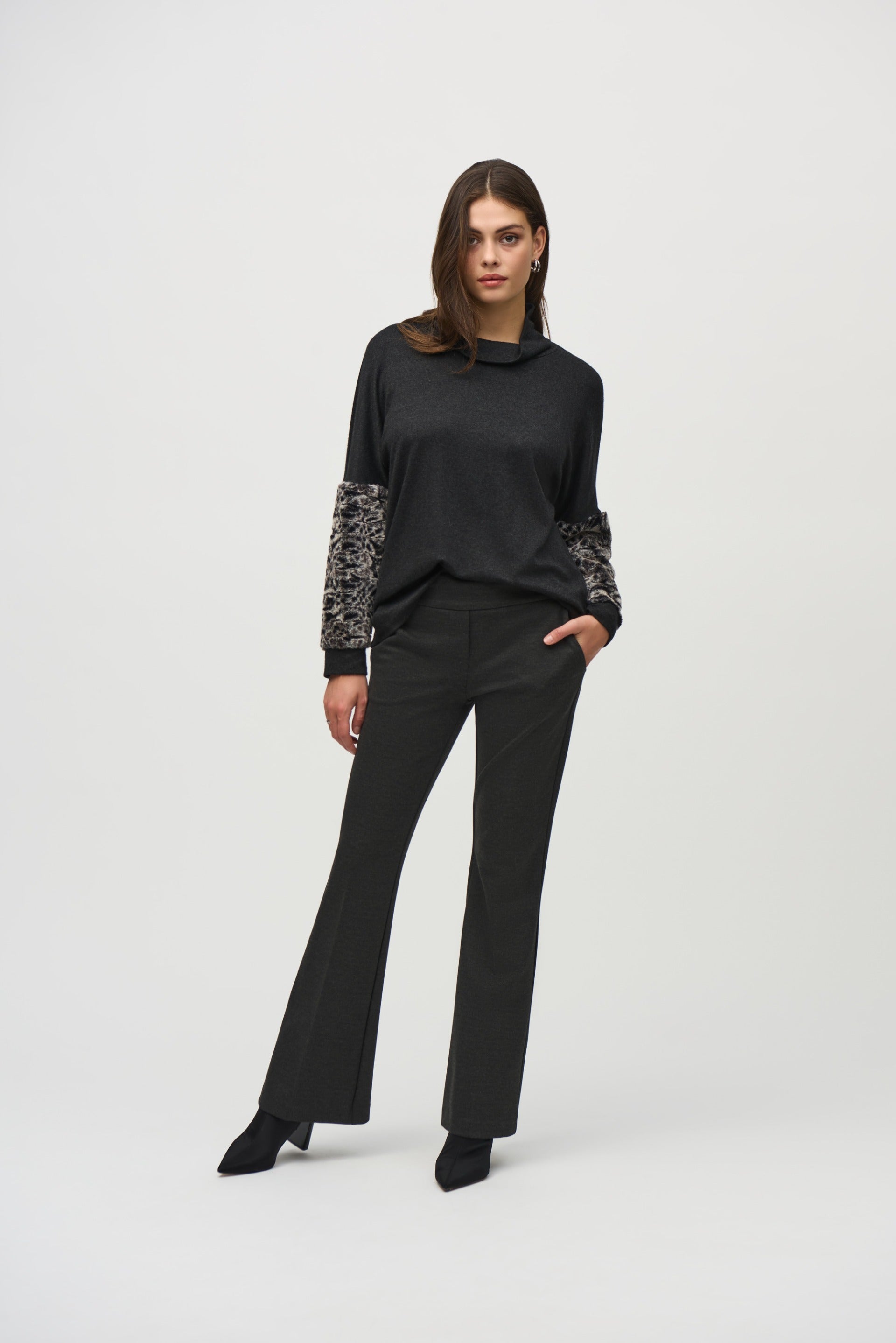 Joseph Ribkoff Charcoal Grey Top With Faux Fur Sleeves Style 244247