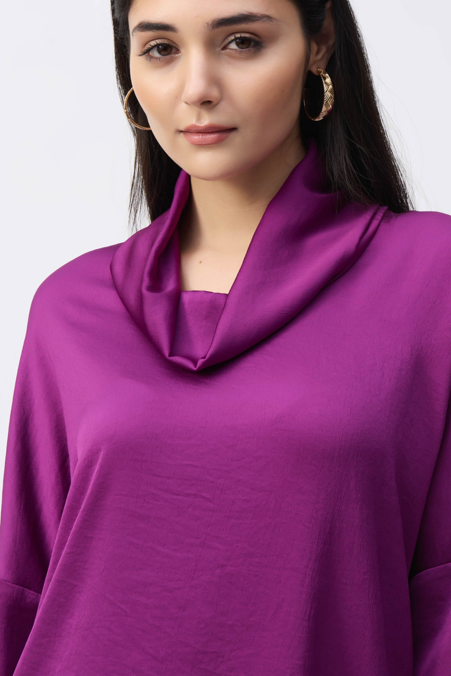 Joseph Ribkoff Empress Satin Cowl Collar Top Style 243189
