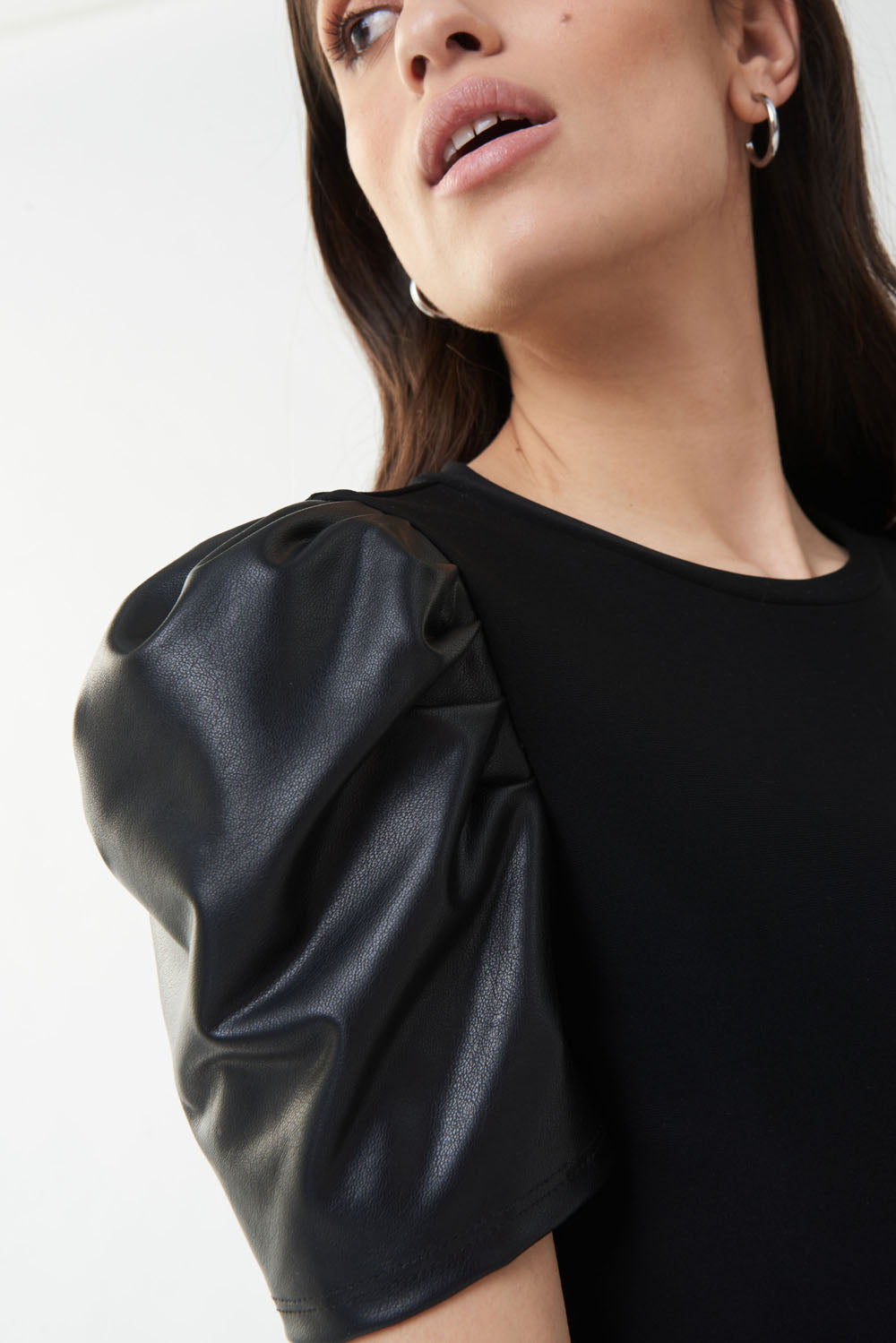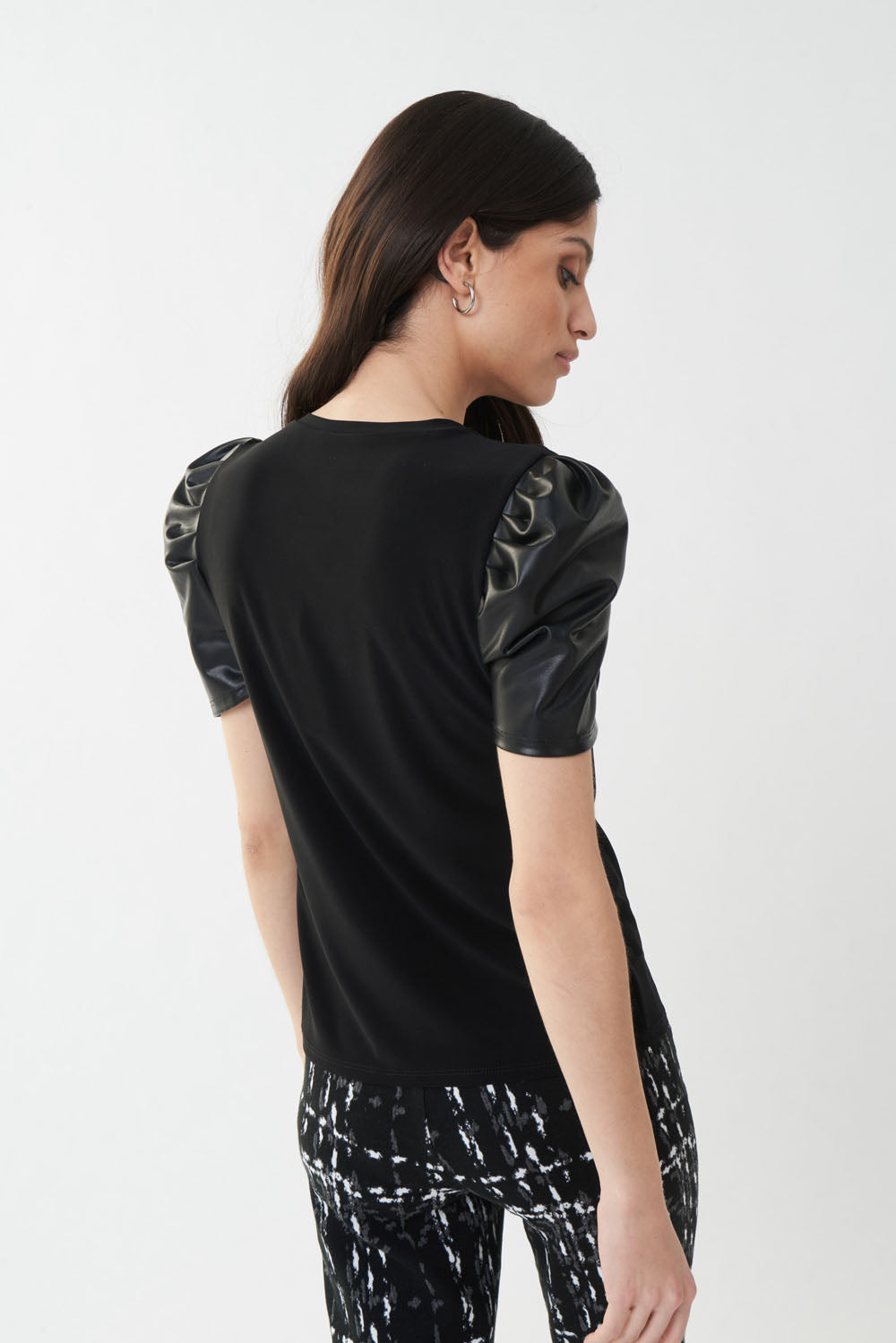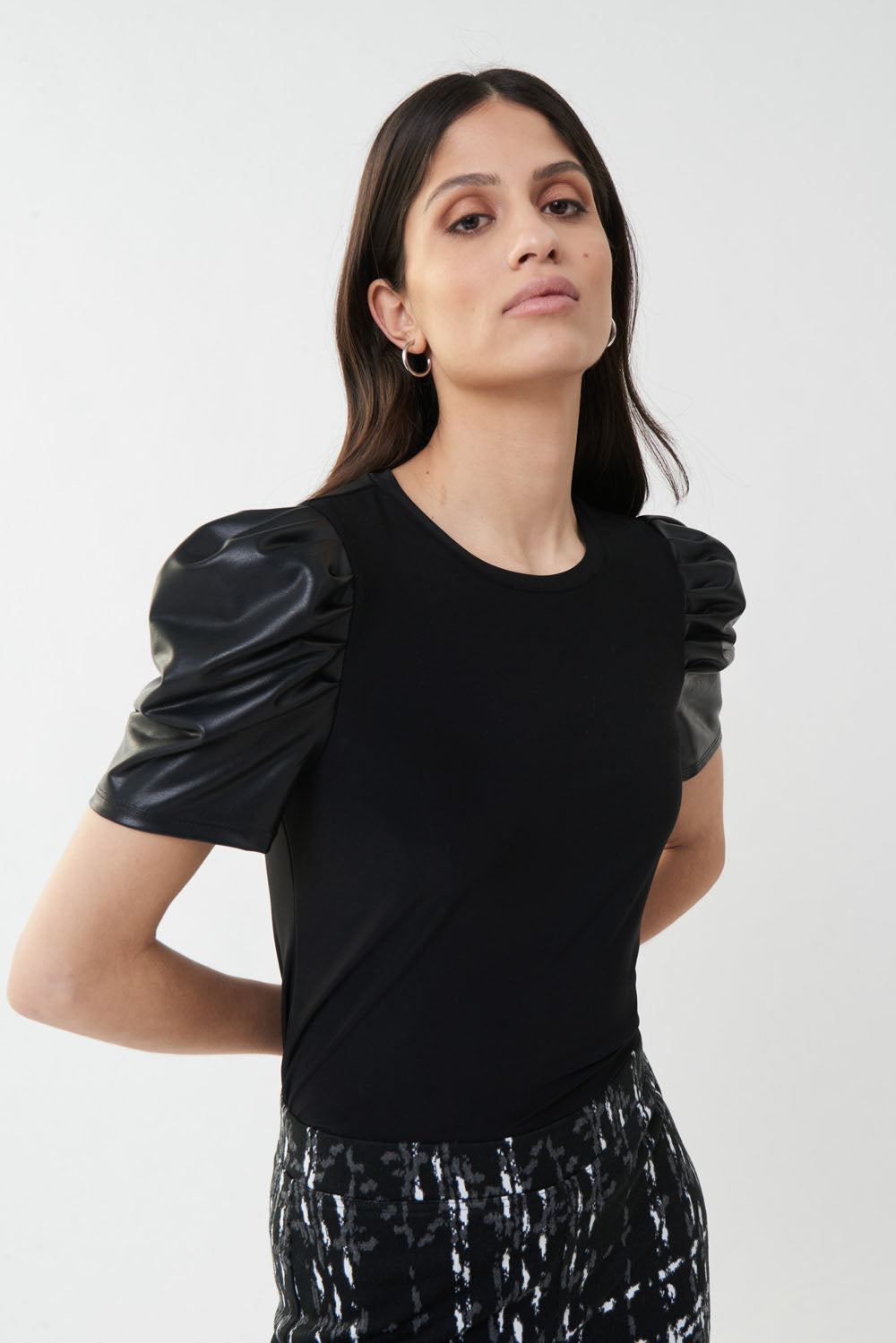 Joseph Ribkoff Faux Leather Puff Sleeve Top Style 223213