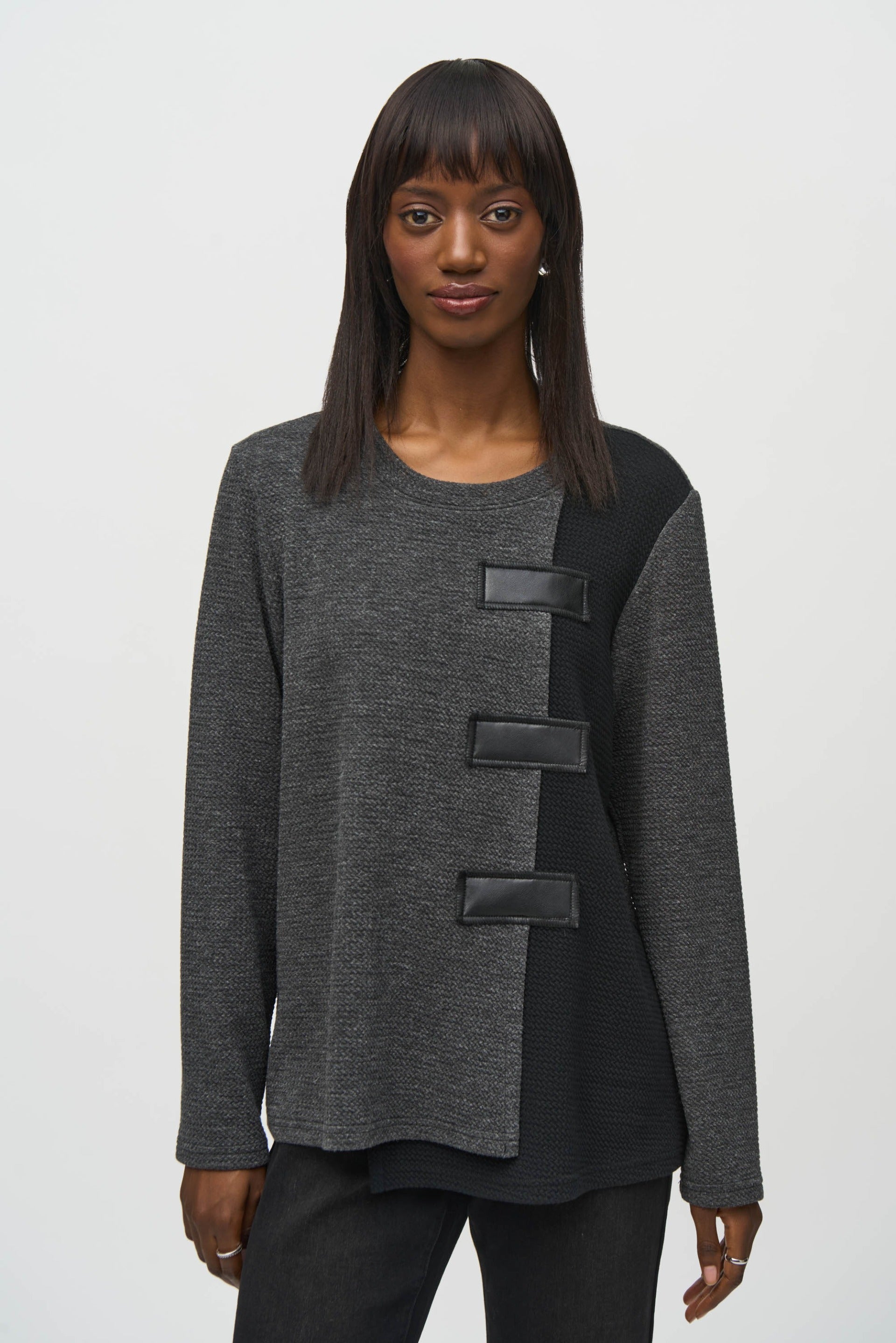 Joseph Ribkoff Grey/Black Color Block Boxy Tunic Style 244133