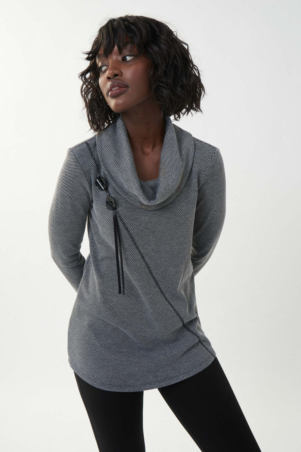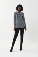 Joseph Ribkoff Grey/Black Shawl Collar Tunic Style 223053