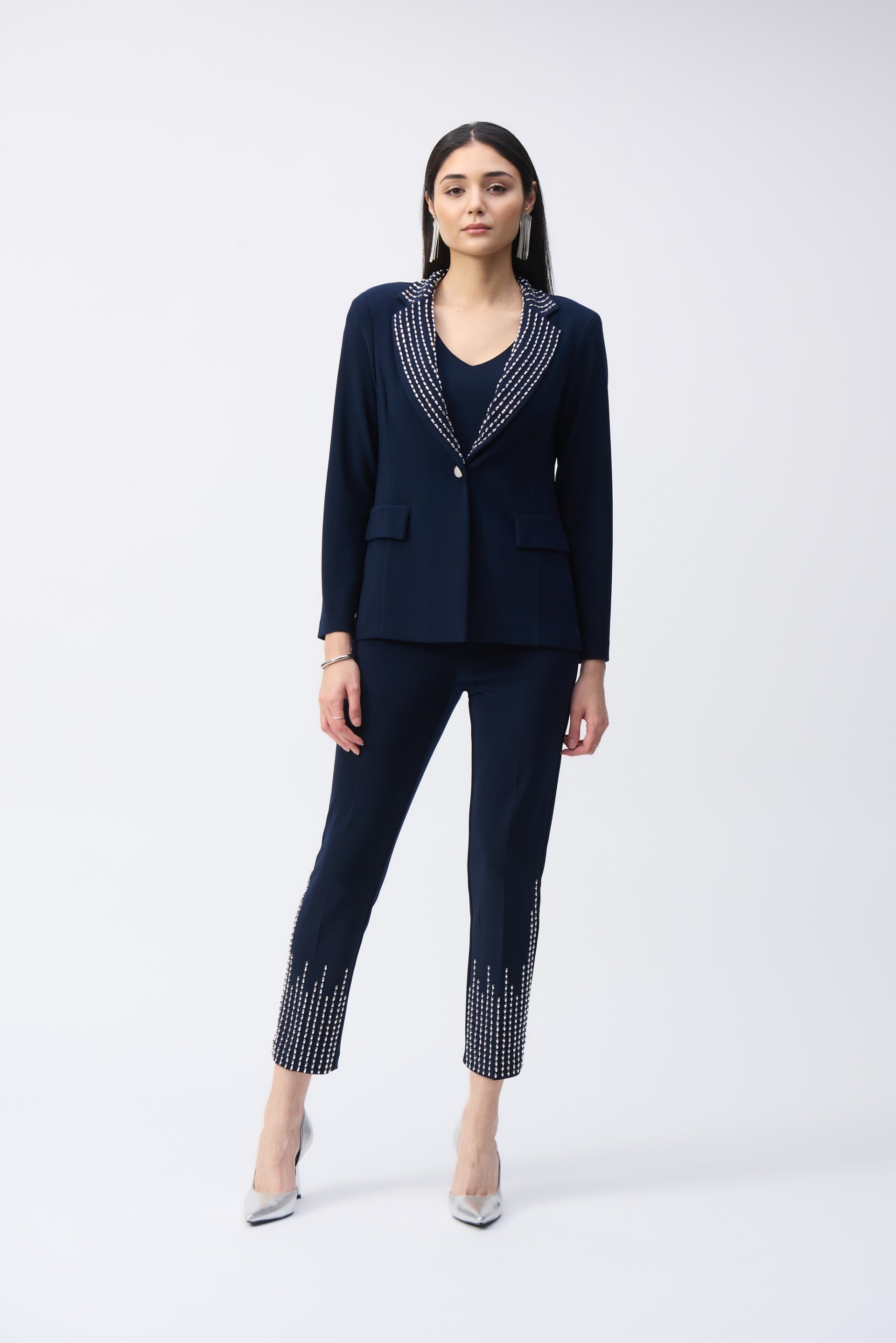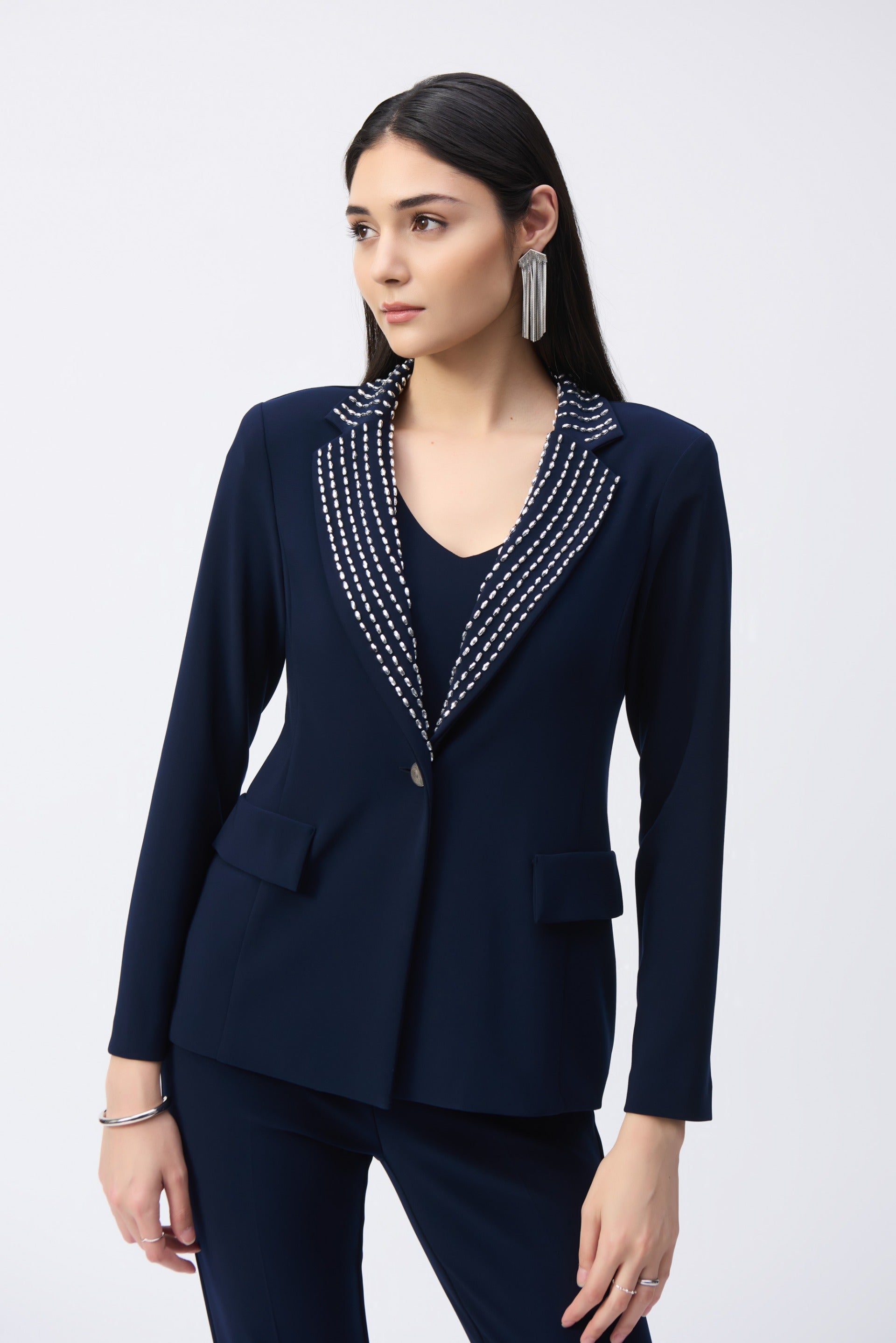 Joseph Ribkoff Midnight Blue Embellished Fitted Blazer Style 243731