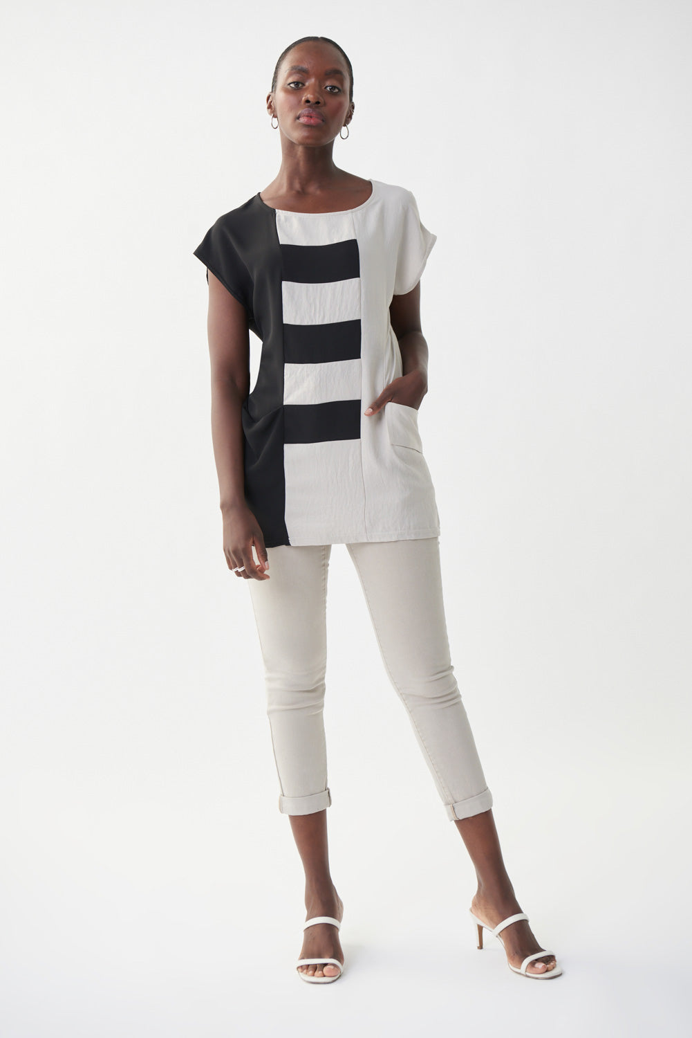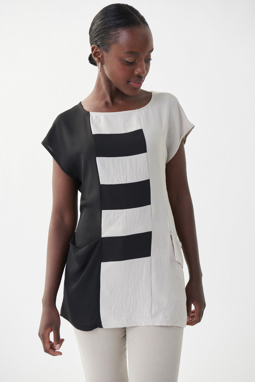Joseph Ribkoff Moonstone/Black Contrast Detail Top Style 222129