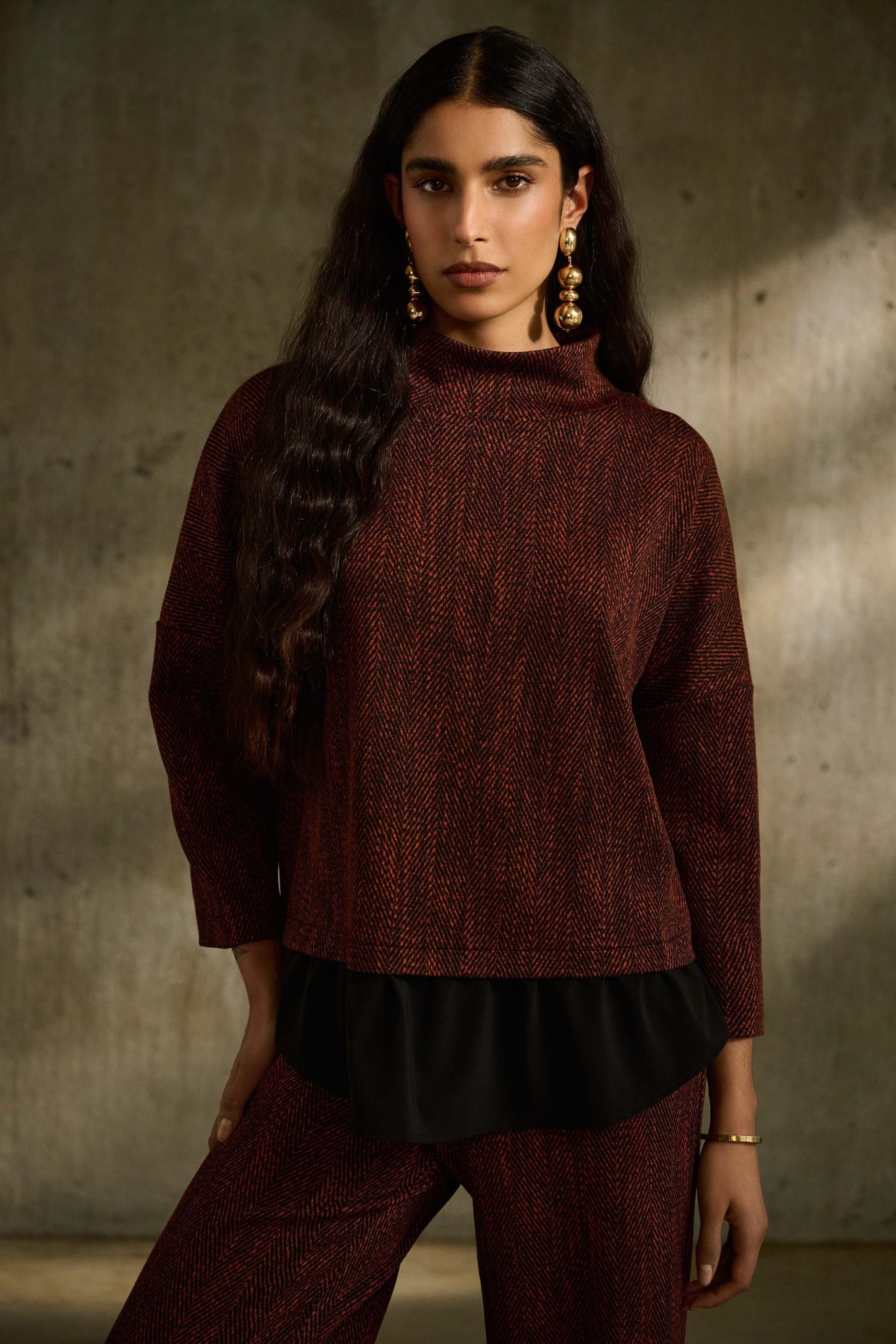 Joseph Ribkoff Orange/Black Layered Boxy Top Style 243315