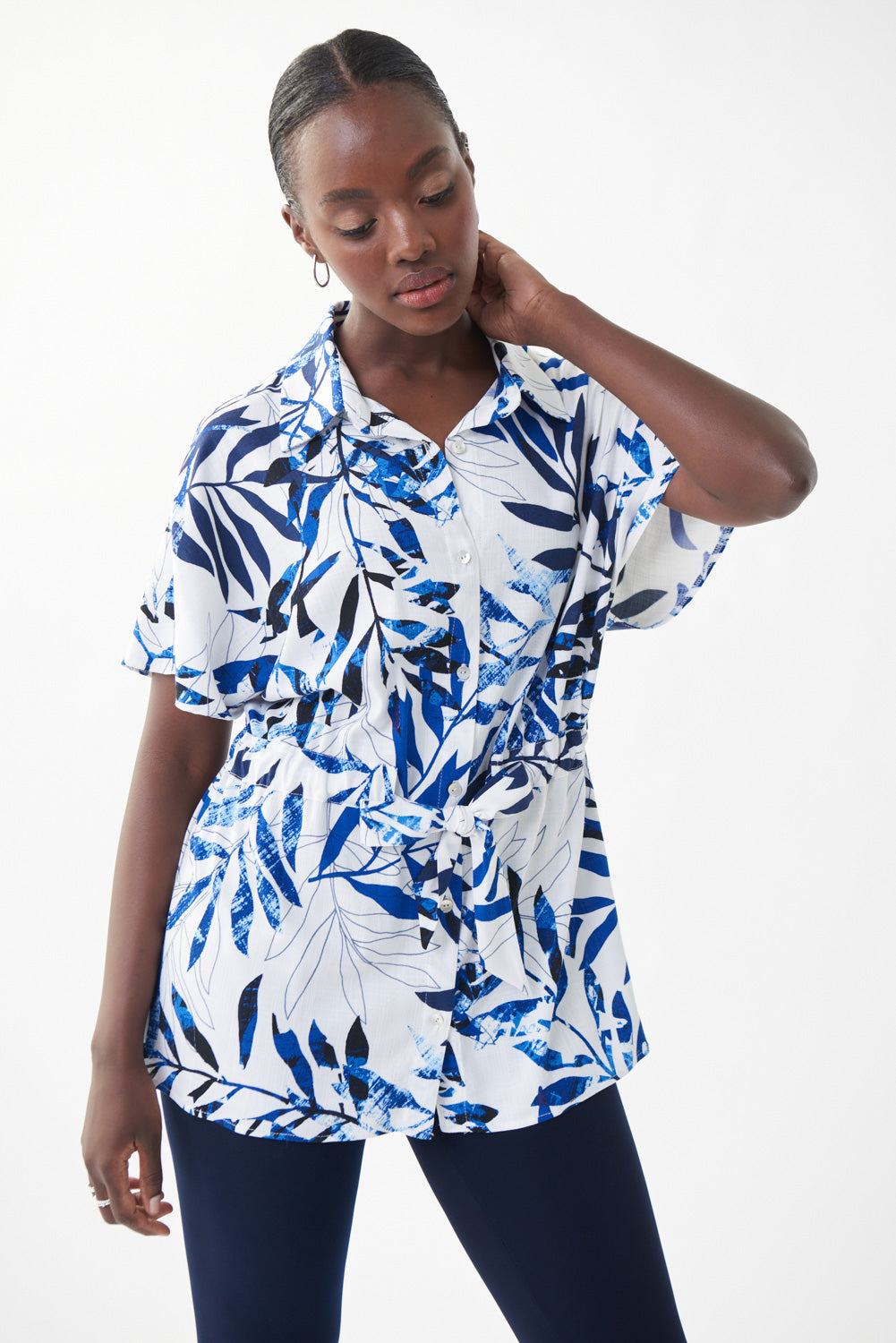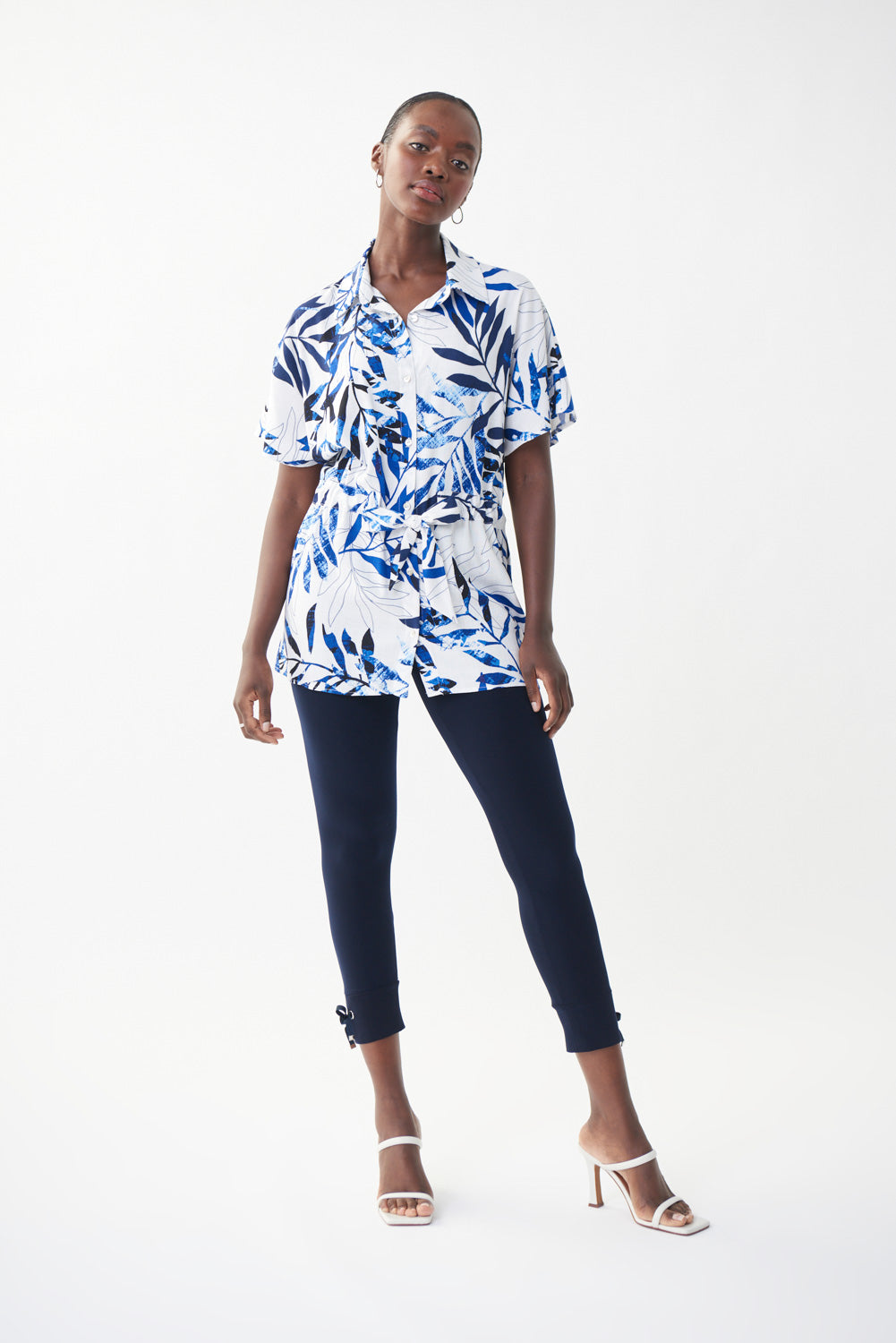 Joseph Ribkoff Vanilla/Multi Floral Print Belted Top Style 222081