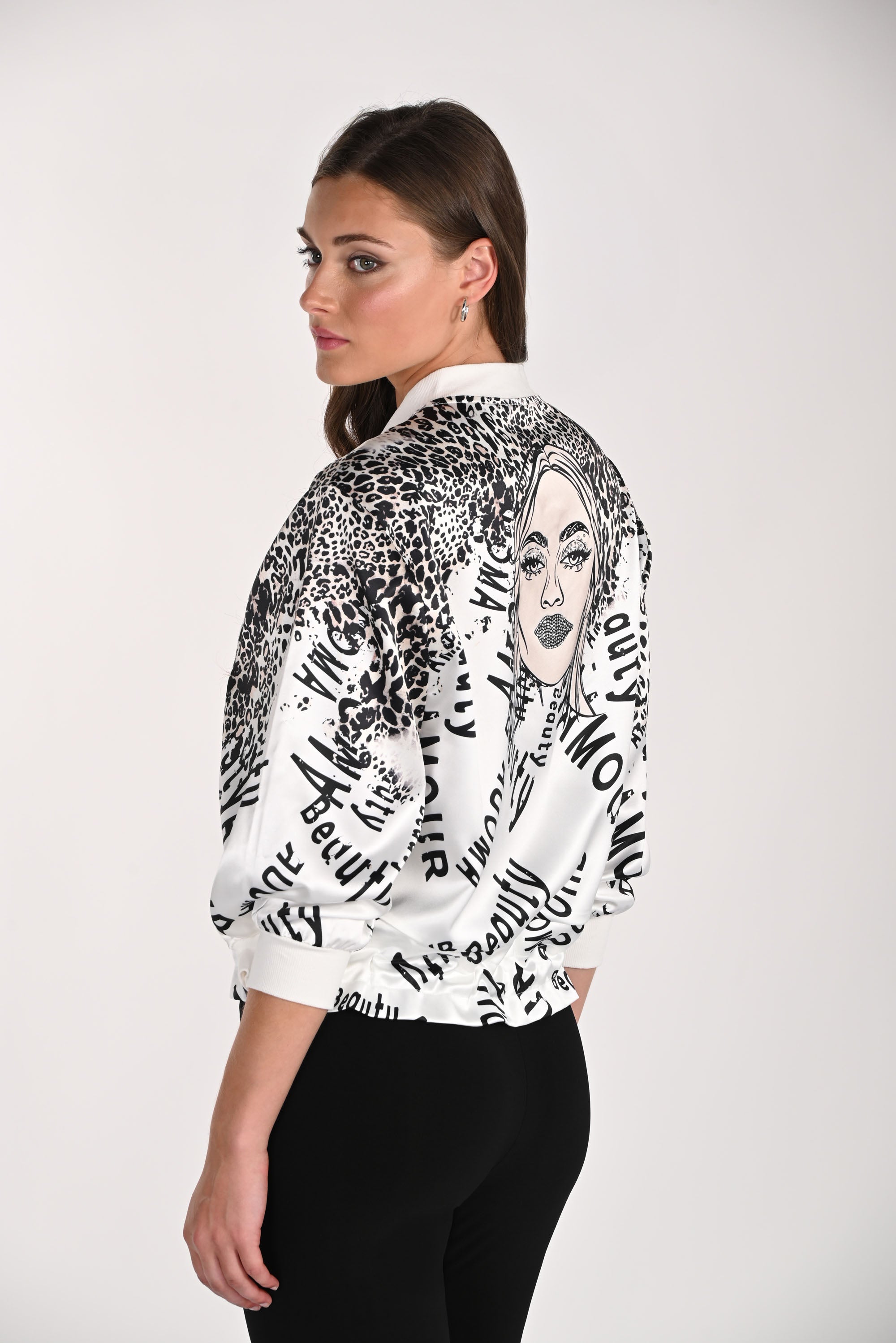 Frank Lyman Animal & Text Print Bomber Jacket Style 261657