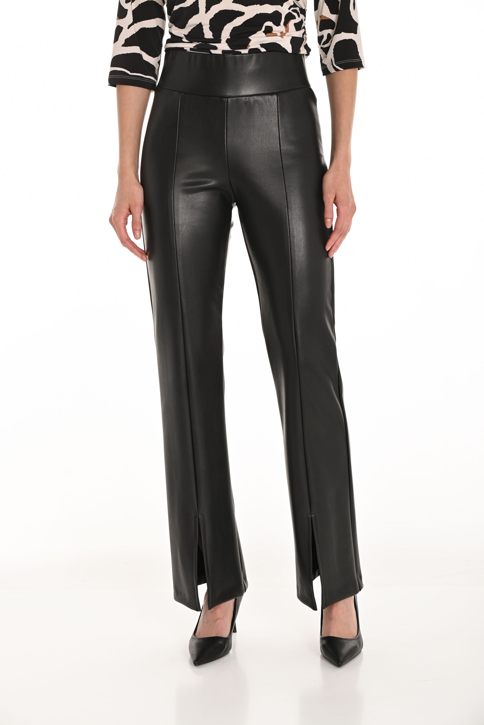 Frank Lyman Black Leatherette Front Slit Hem Pants Style 253134