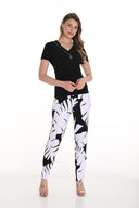 Frank Lyman Black/Off-White Leaf Print Pants Style 256137