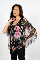 Frank Lyman Black/Pink Floral Top Style 221291-FL