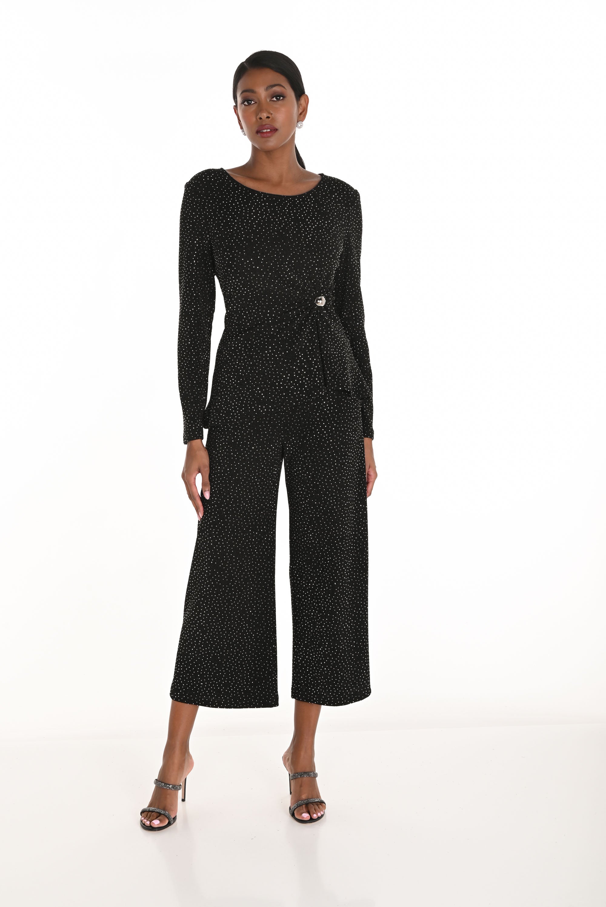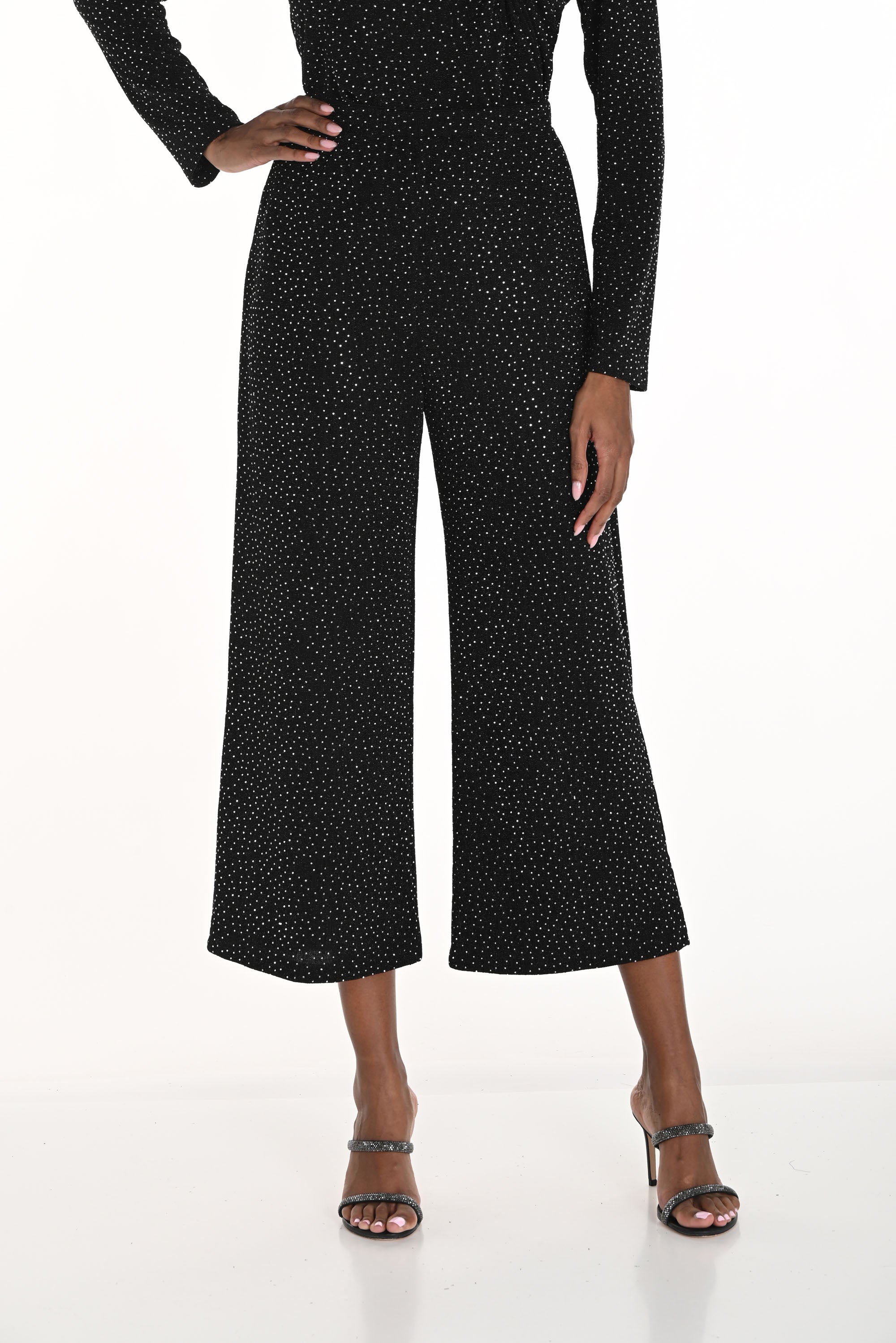 Frank Lyman Black/Silver Cropped Wide-Leg Pants Style 259259