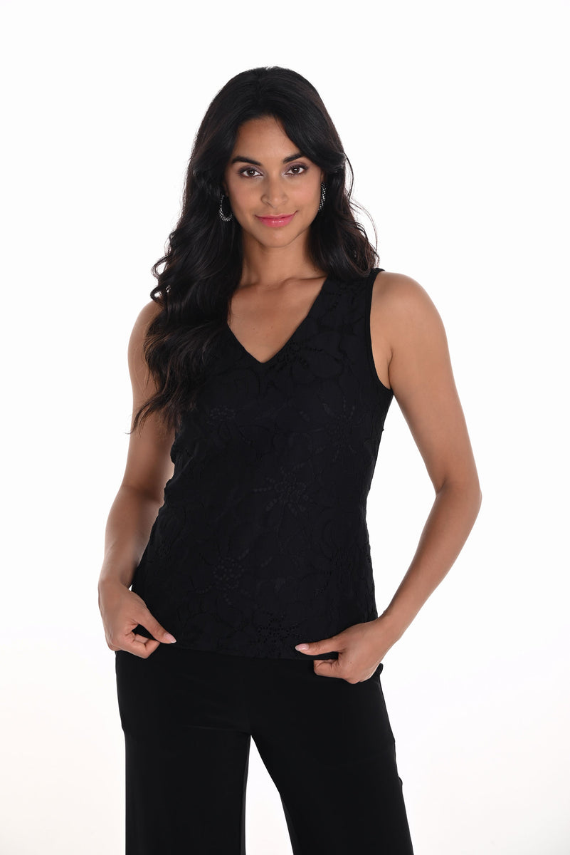 Frank Lyman Black V-Neck Sleeveless Top Style 251267