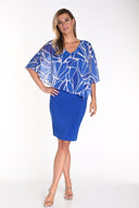 Frank Lyman Blue/Off-White Chiffon Overlay Dress Style 241502