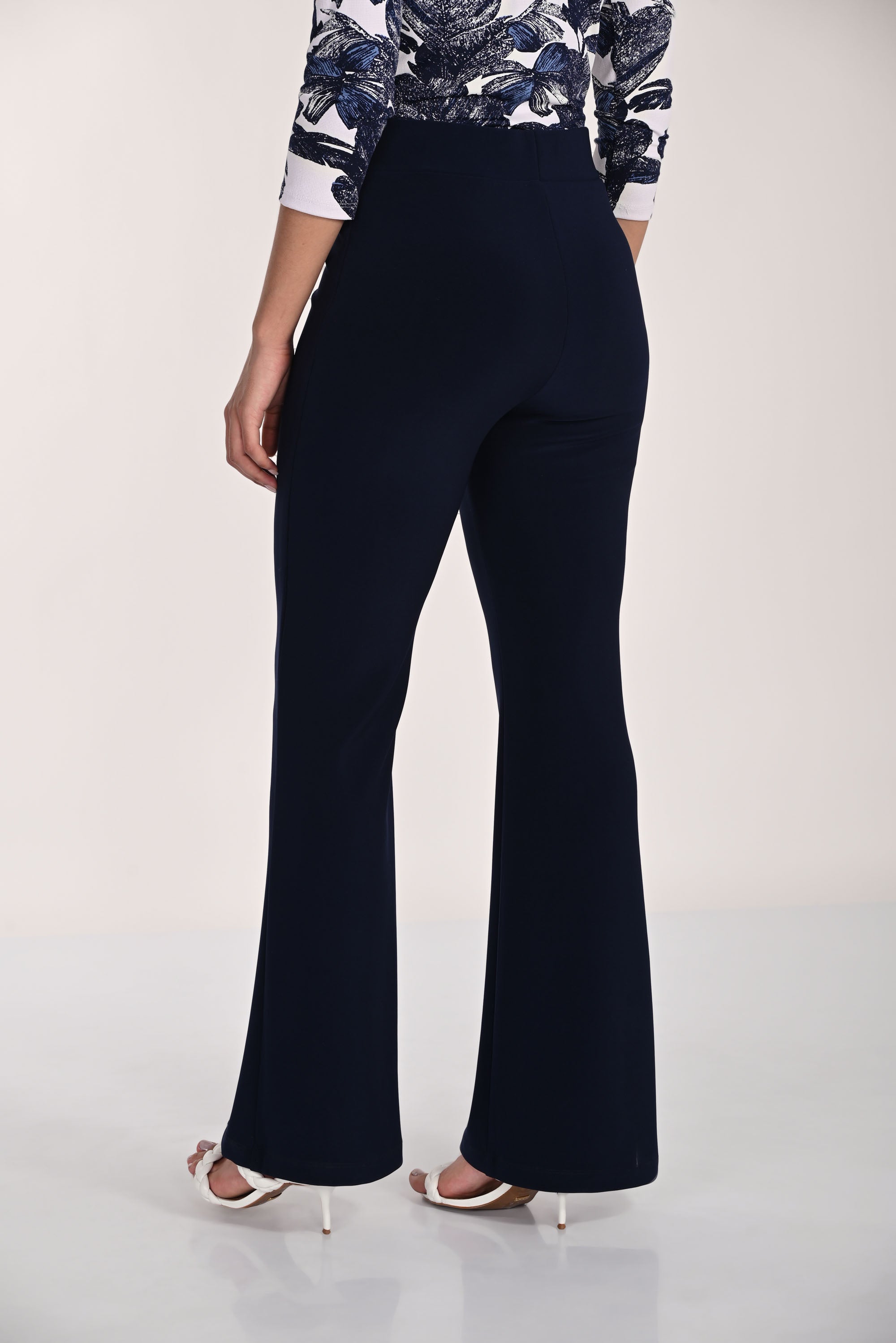 Frank Lyman's High-Waist Fit & Flare Trousers (Style 266014) offer a refined silhouette ideal for professional and social environments. Designed with a high waist and elegant flare, these full-length trousers feature a subtle slit, enhancing both style and movement. Their plain pattern ensures versatility, making them an essential piece for a polished business-casual look. Crafted to deliver comfort without compromising sophistication, these trousers provide a timeless option for elevating your wardrobe.