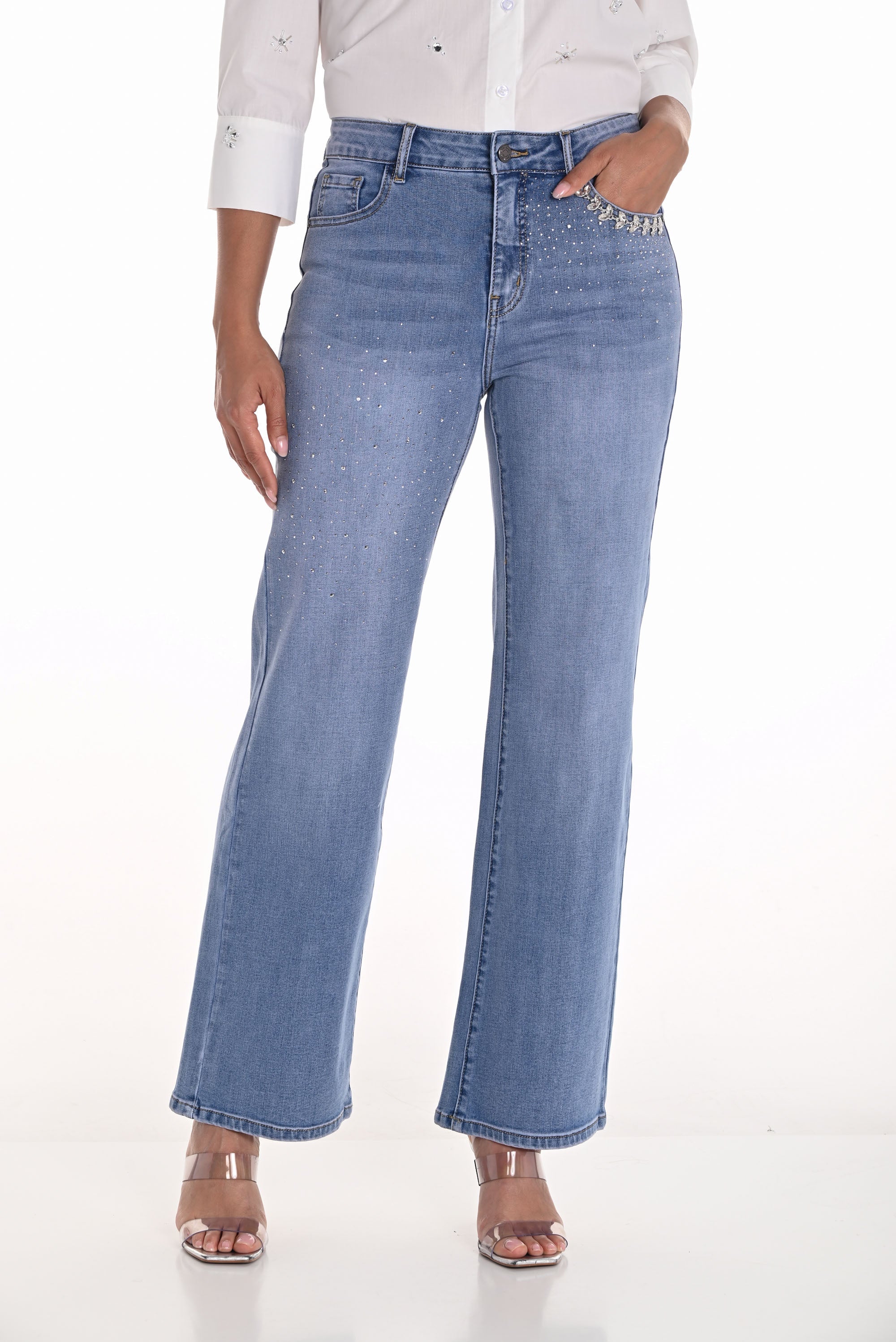 Frank Lyman Light Blue Denim Wide-Leg Jean Pants Style 251501