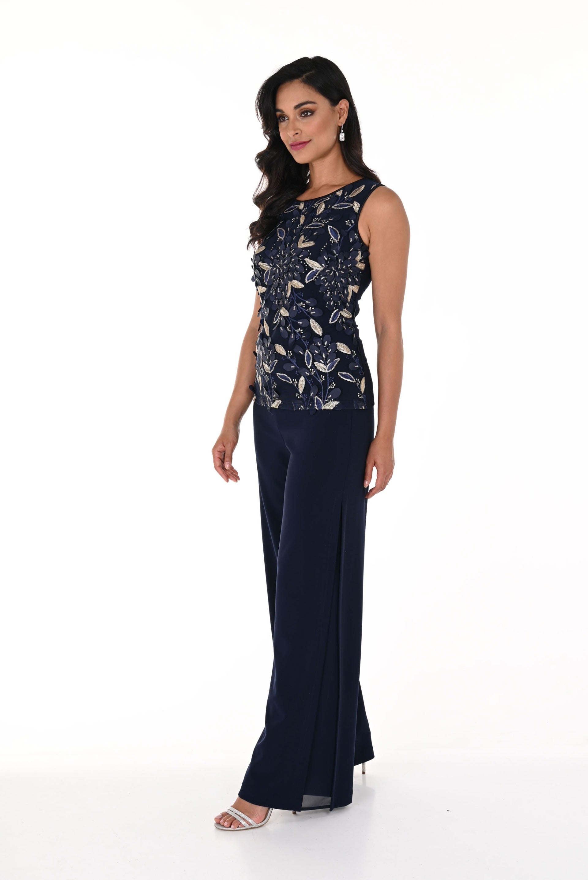 Frank Lyman Midnight Blue Wide-Leg With Mesh Insert Pants Style 248028