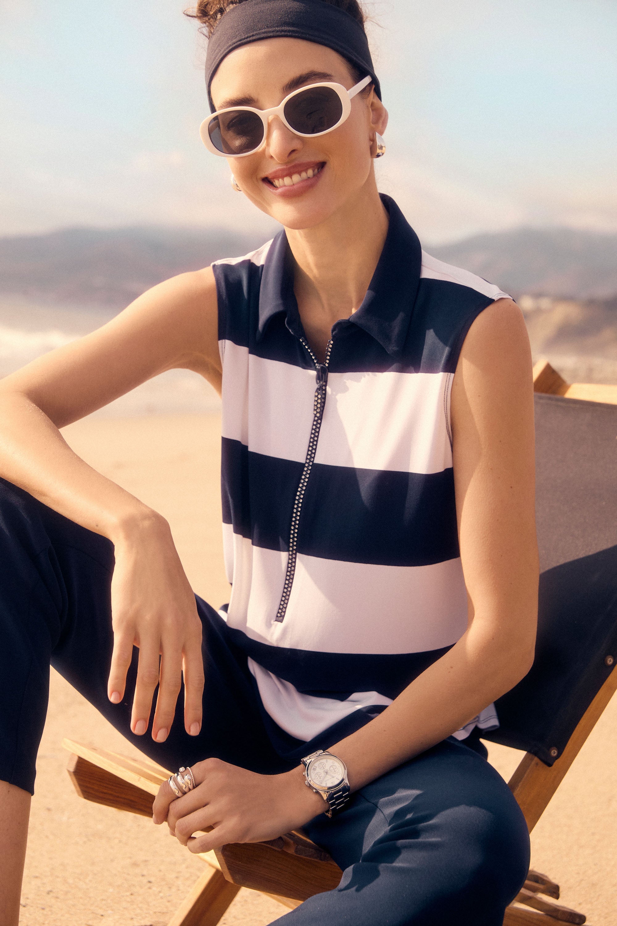 Frank Lyman Navy/White Striped Sleeveless Top Style 251189