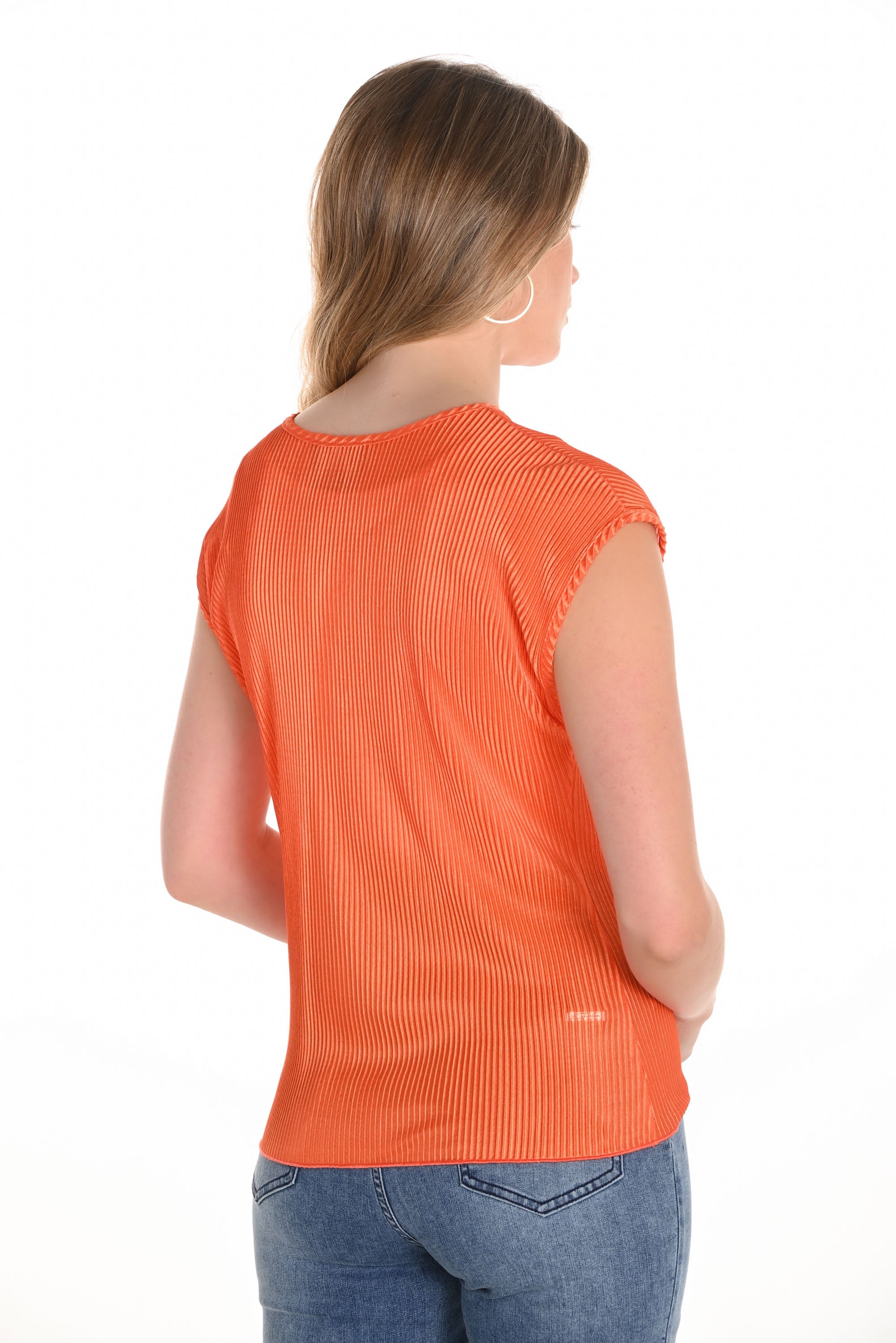 Frank Lyman Orange Ribbed Crew Neck Top Style 251123